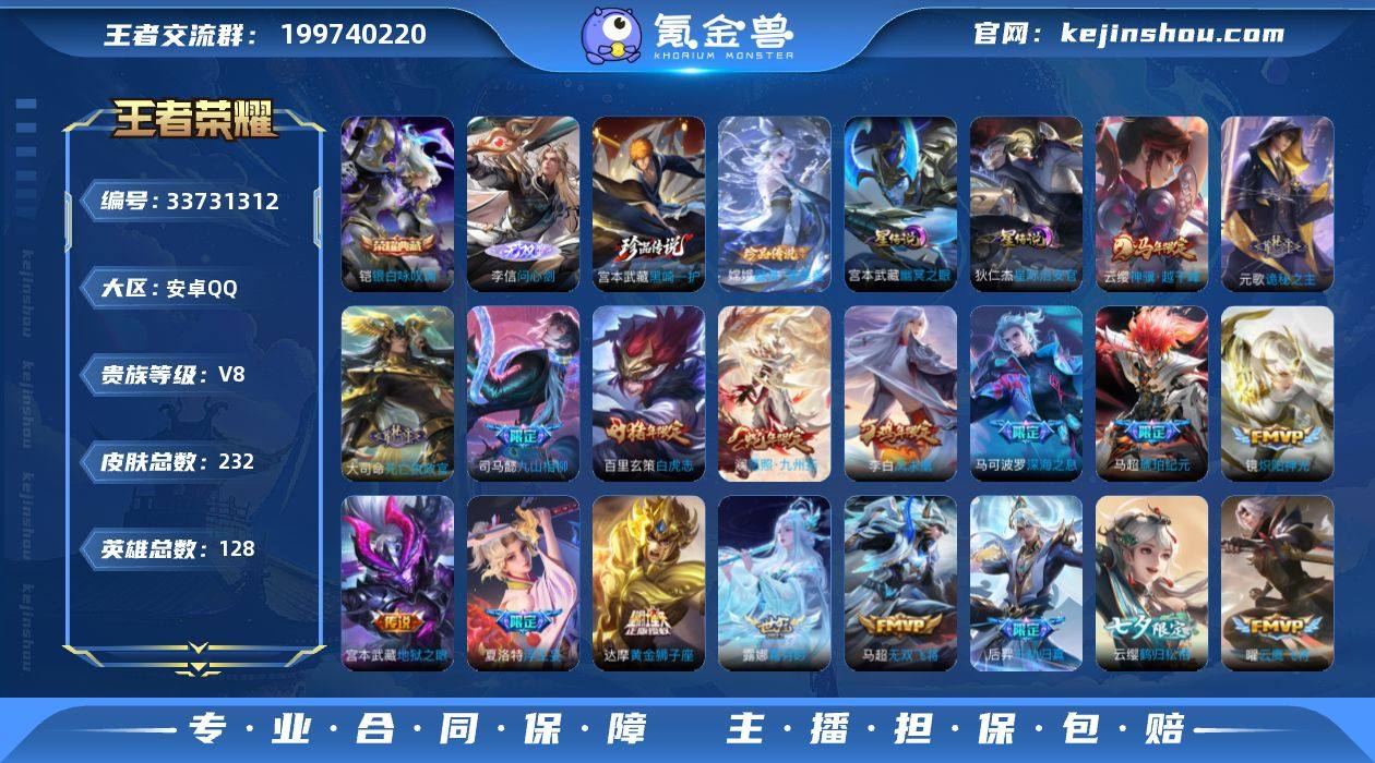【精品战力带妹·48段对抗路·1.4w金标马超·1.1w金标公孙离·准万战金标关羽·29传说·问心剑·黑崎一护·器灵落星盏·银白咏叹调·神骥越千峰·诡秘之主·千劫归真·马超琥珀纪元·武圣·白虎志·凤求凰·浮生妄·深海之息·霜月吟·大乔时之奇旅·影龙天霄·遇见神鼓·死亡执政官·九山相柳·鹤归松栖·无二次包过】YXw25247-安卓Q-128英雄-232皮肤-10王者印记-180铭文-贵族积分8w【贵族8】【1典藏·1无双·2星传说·29传说·18按键】【因赛季更新游戏段付以上号为准!】 【英雄全皮】:元歌全皮,敖隐全皮,夏洛特全皮,空空儿全皮,影全皮,海诺全皮 【荣耀典藏】:铠银白咏叹调 【无双皮肤】:李信问心剑 【珍品传说】:宫本武藏黑崎一护,嫦娥器灵落星盏 【星元皮肤】:狄仁杰星际治安官,宫本武藏幽冥之眼 【传说皮肤】:云缨神骥越千峰,元歌诡秘之主,大司命死亡执政官,司马懿九山相柳,后羿千劫归真,澜愿照九州拓,桑启鸣野蒿,马超琥珀纪元,露娜霜月吟,大乔时之奇旅,兰陵王影龙天霄,吕布遇见神鼓,云缨鹤归松栖,马可波罗妄想实况,公孙离记忆之芯,夏洛特浮生妄,马可波罗深海之息,马超无双飞将,李元芳飞鸢探春,镜炽阳神光,虞姬启明星使,关羽武圣,曜云鹰飞将,干将莫邪久胜战神,达...