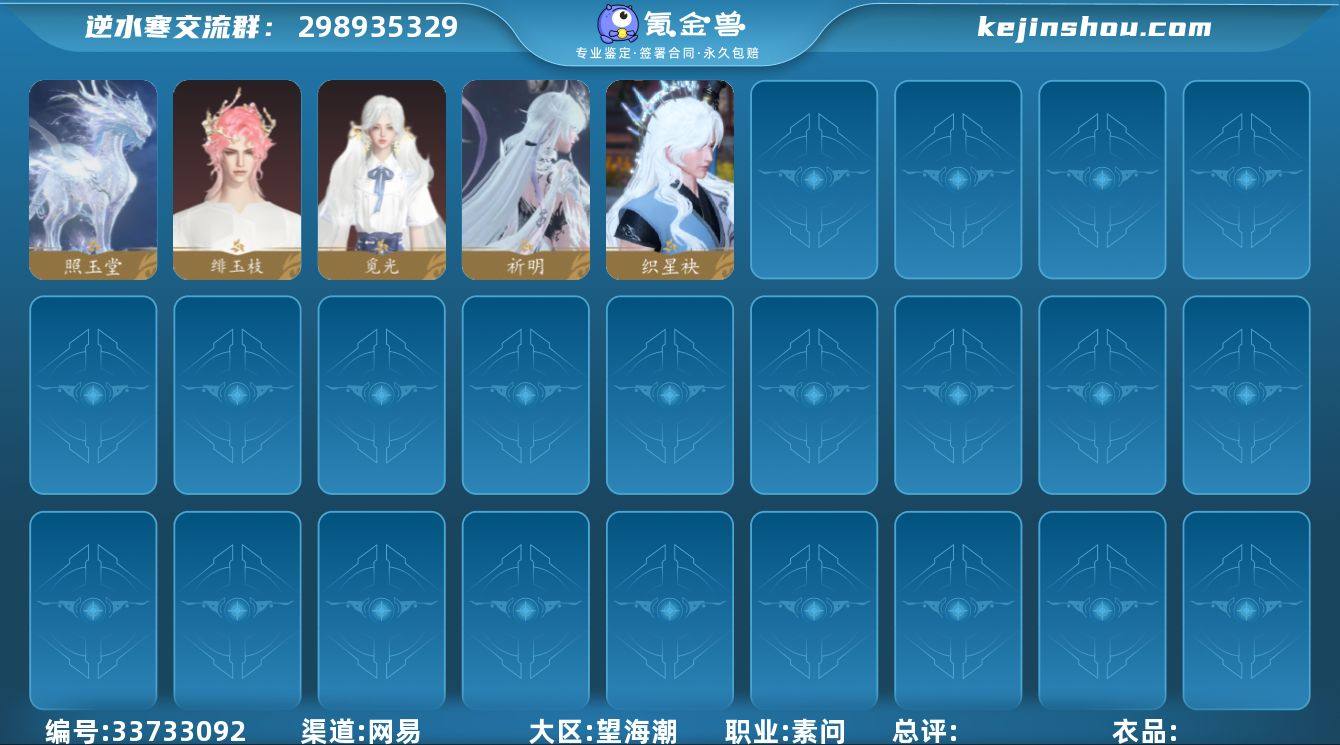 【已用天赏石10】战力值:839279 总评:839279 角色等级:89 衣品值: 184765 国色值: 51880 已用天赏石:10 天霓染数量:1 【网易手机账号】 【无换绑冷却】 【素问】 【女】 【4级】 【互通】 副本外观4 天赏外观5 天赏祥瑞1 武器环身3 副本外观:白夜拂雪,霜途无间,飞焰流波,星落月皓; 天赏外观:绯玉枝,觅光,织星袂,祈明,星辰武器; 天赏祥瑞:照玉堂; 武器环身:谪仙雷剑,赤焰流光,天魔蛊主;