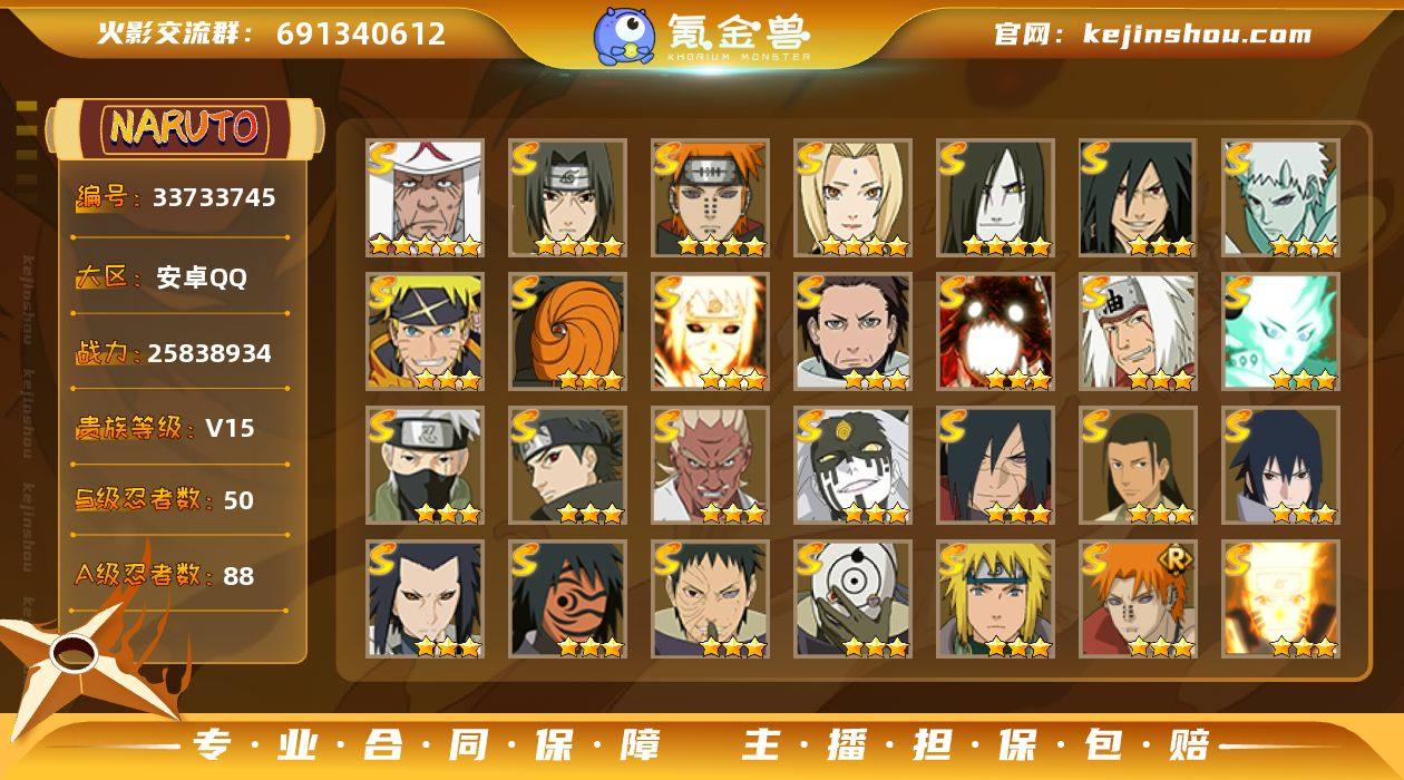 火影号,可讲价,v15 在一组,博闻录已买,幸运捞鱼充了600,可以把第二轮拿下,忍具修行卡还有20多天,祈愿夺宝幸运值83/110,超影服务还有50多天,月卡已充, S忍50个;30个点券a,A忍88个;时装44个;通灵兽31个;战斗:2583W;主场景雪山;本服排名:11;秽土鼬54片可以组织祈愿,虎皮马上出,有什么细节想问的也可以咨询,160忍具出了4个