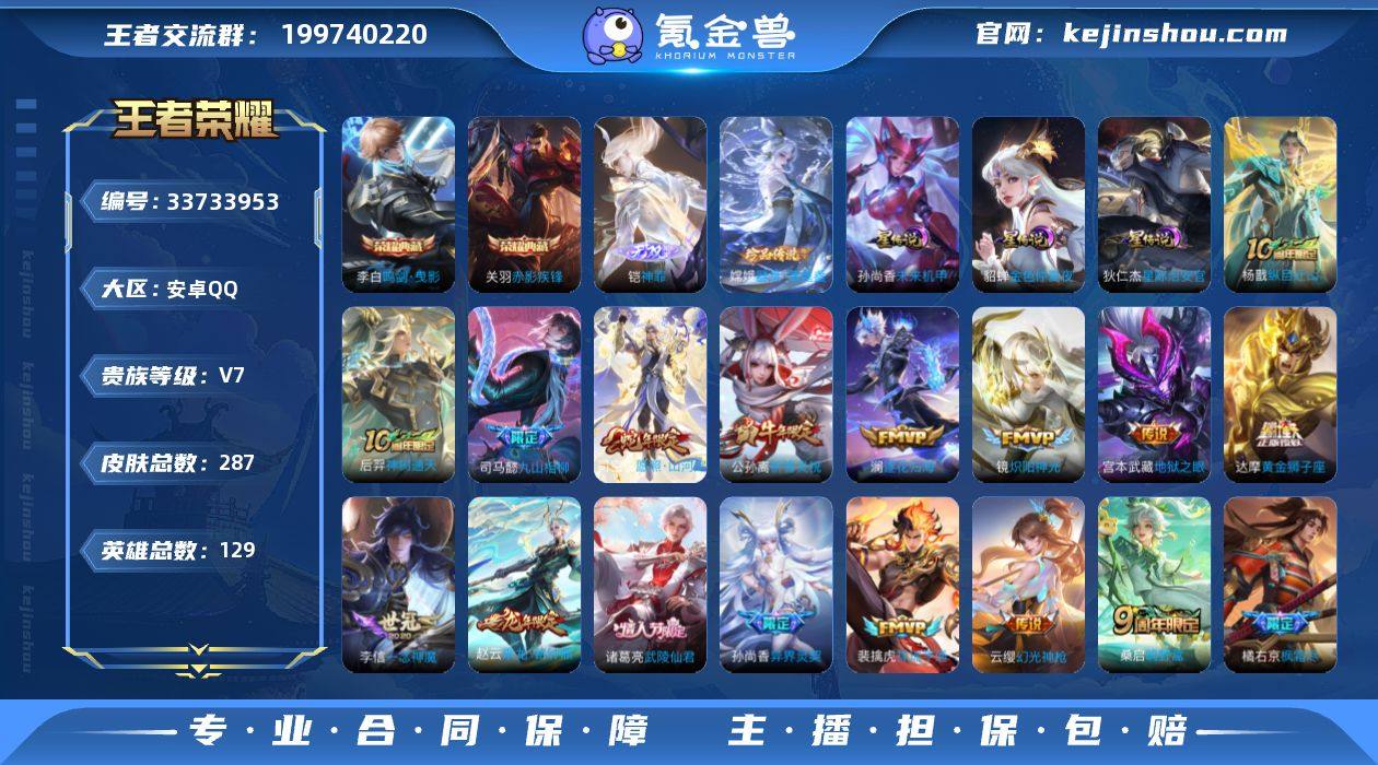 【精品推荐·万战金标影·鸣剑曳影·赤影疾锋·神罪·器灵落星盏·祈雪灵祝·乘龙铭钟鼎·愿照山河定·九山相柳·逐花归海·挚爱之约·武陵仙君·财神纳福天幕·无二次包过】YXw22789-安卓Q-128英雄-287皮肤-19王者印记-300铭文-贵族积分7w【贵族7】【2典藏·1无双·1珍品·3星传说·22传说·2天幕·11按键】【因赛季更新游戏段付以上号为准!】 【英雄全皮】:司马懿全皮,孙权全皮,敖隐全皮,司空震全皮,影全皮 【荣耀典藏】:李白鸣剑曳影,关羽赤影疾锋 【无双皮肤】:铠神罪 【珍品传说】:嫦娥器灵落星盏 【星元皮肤】:狄仁杰星际治安官,孙尚香未来机甲,貂蝉金色仲夏夜 【天幕】:财神纳福天幕,共赏芳华天幕 【传说皮肤】:杨戬纵目迁山,后羿神树通天,司马懿九山相柳,司空震愿照山河定,云缨幻光神枪,裴擒虎祥瑞亨通,桑启鸣野蒿,赵云乘龙铭钟鼎,澜逐花归海,橘右京枫霜尽,孙策挚爱之约,孙尚香异界灵契,赵云淬星耀世,公孙离祈雪灵祝,镜炽阳神光,虞姬启明星使,李信一念神魔,达摩黄金狮子座,梦奇胖达荣荣,诸葛亮武陵仙君,宫本武藏地狱之眼,狄仁杰超时空战士 【限定皮肤】:姜子牙天穹之誓,狄仁杰阴阳师,赵云皇家上将,赵云龙胆,赵云百木心枪,墨子神迹守卫,嬴政优...