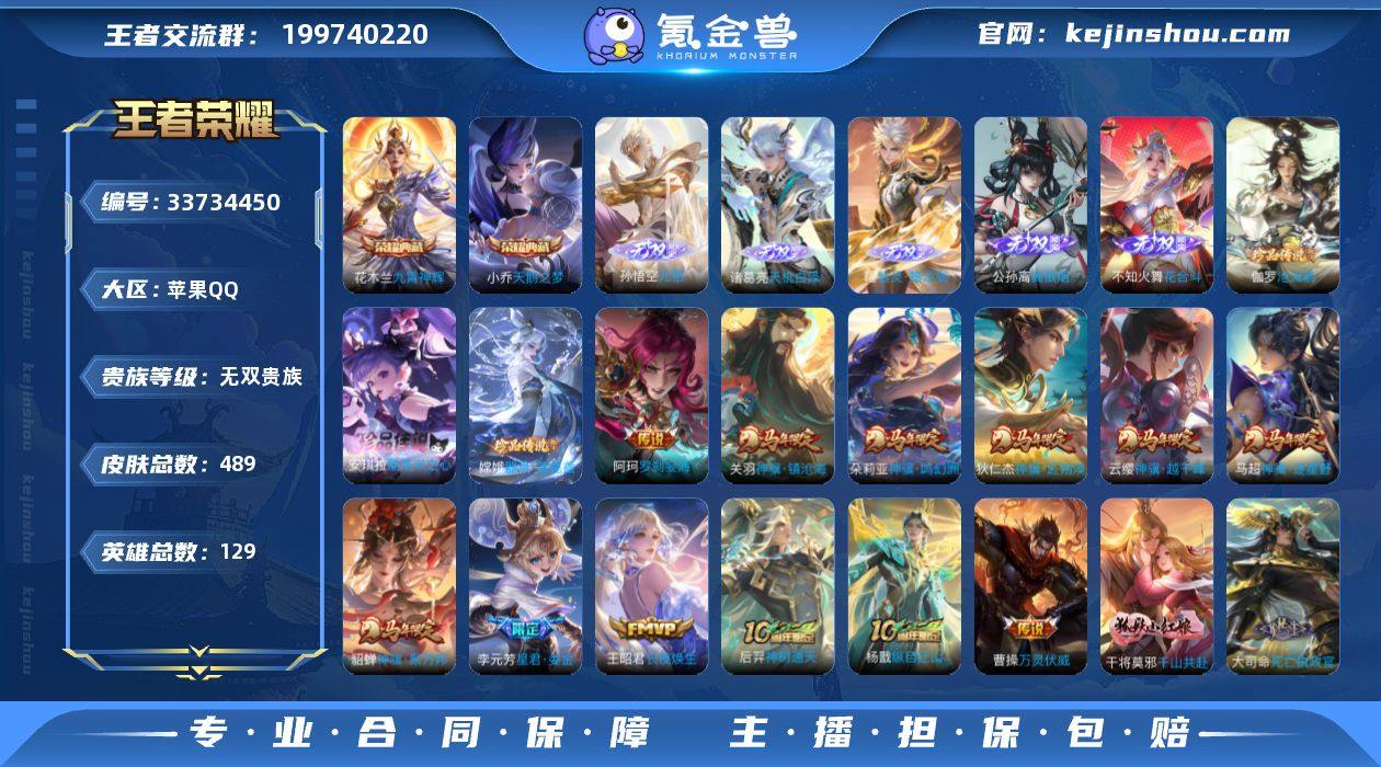 【王者荣耀】珍品无双0 典藏2 无双7 珍品传说4 传说65 史诗140 英雄129 皮肤489 贵族无双级 荣耀典藏:天鹅之梦|九霄神辉__无双皮肤:群星魔术团|离恨烟|花合斗|雪境奇遇|器灵·螭龙剑|天机白泽|无相__珍品传说:孙策-时之奇旅|器灵·落星盏|酷洛米之心|沧流箭__传说皮肤:鸣野蒿|深海之息|无双飞将|补天|孙尚香-异界灵契|绛天战甲|炽阳神光|启明星使|地狱之眼|地狱火|海洋之心|仲夏夜之梦|云霓雀翎|久胜战神|黄金狮子座|狄仁杰-超时空战士|黄金射手座|黄金白羊座|一念神魔|云鹰飞将|飞鸢探春|游龙清影|乞巧织情|浮生妄|画中仙|记忆之芯|孙尚香-末日机甲|白虎志|大乔-时之奇旅|凤求凰|黄金天蝎座|金乌负日|零号·赤焰|落雪白狼|时雨天司|项羽-无限倾心|虞姬-无限倾心|战鼓燎原|周瑜-音你心动|乘龙·铭钟鼎|乘龙·问璇玑|觅芳踪|山海·琳琅生|幻光神枪|愿照·岁时盈|愿照·九州拓|愿照·众生和|愿照·千秋盛|云诺千山|死亡执政官|千山共赴|万灵伏威|神树通天|纵目迁山|长夜焕生|花木兰-异界灵契|神骥·镇沧海|神骥·鸣幻洲|神骥·赴朔漠|神骥·越千峰|神骥·逐星野|神骥·聚万邦|星君·娄金|罗刹妄海__稀有限定:白晶晶|至尊宝|瑞麟志|大圣娶亲|奇迹圣诞|李小龙|梁祝|时之彼端|暗影游猎|白昼王子|冰霜...