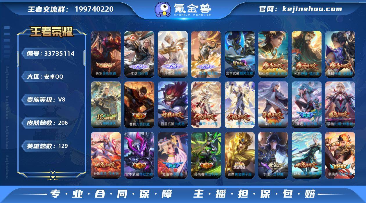 可换绑【高质量多无双精品号·3无双·关羽典藏·狄仁杰关羽马超马限·澜司空震蛇限·落雪白狼·赵云孙策龙限·浮生妄·炽霜斩·白虎志·凤求凰·埋骨钱·冰霜神祗·傲雪梅枪】15按键,1星传说,8王者印记,五级铭文280,无二次,安卓Q-V8-206皮肤-1典藏皮肤-3无双-22传说-61史诗【英雄全皮】:孙权全皮,李信全皮,敖隐全皮,赵怀真全皮,戈娅全皮,空空儿全皮,海诺全皮【荣耀典藏】:关羽赤影疾锋【无双皮肤】:李信问心剑,孙悟空无相,曜器灵螭龙剑【星元皮肤】:宫本武藏幽冥之眼【传说皮肤】:关羽神骥镇沧海,狄仁杰神骥赴朔漠,马超神骥逐星野,后羿神树通天,曹操万灵伏威,司空震愿照山河定,澜愿照九州拓,裴擒虎祥瑞亨通,桑启鸣野蒿,亚连落雪白狼,孙策乘龙淬吴钩,赵云乘龙铭钟鼎,夏洛特浮生妄,李信山海炽霜斩,虞姬启明星使,李信一念神魔,达摩黄金狮子座,百里玄策白虎志,后羿黄金射手座,李白凤求凰,孙尚香末日机甲,宫本武藏地狱之眼【限定皮肤】:暃埋骨钱,蒙犽顽岩魄,姜子牙天穹之誓,杨戬破阵退雄兵,狄仁杰阴阳师,赵云皇家上将,元歌无心,马可波罗暗影游猎,狄仁杰魔术师,项羽海滩派对,韩信傲雪梅枪,刘备百相守梦,虞姬启明星使,百里玄策白虎志,裴擒...
