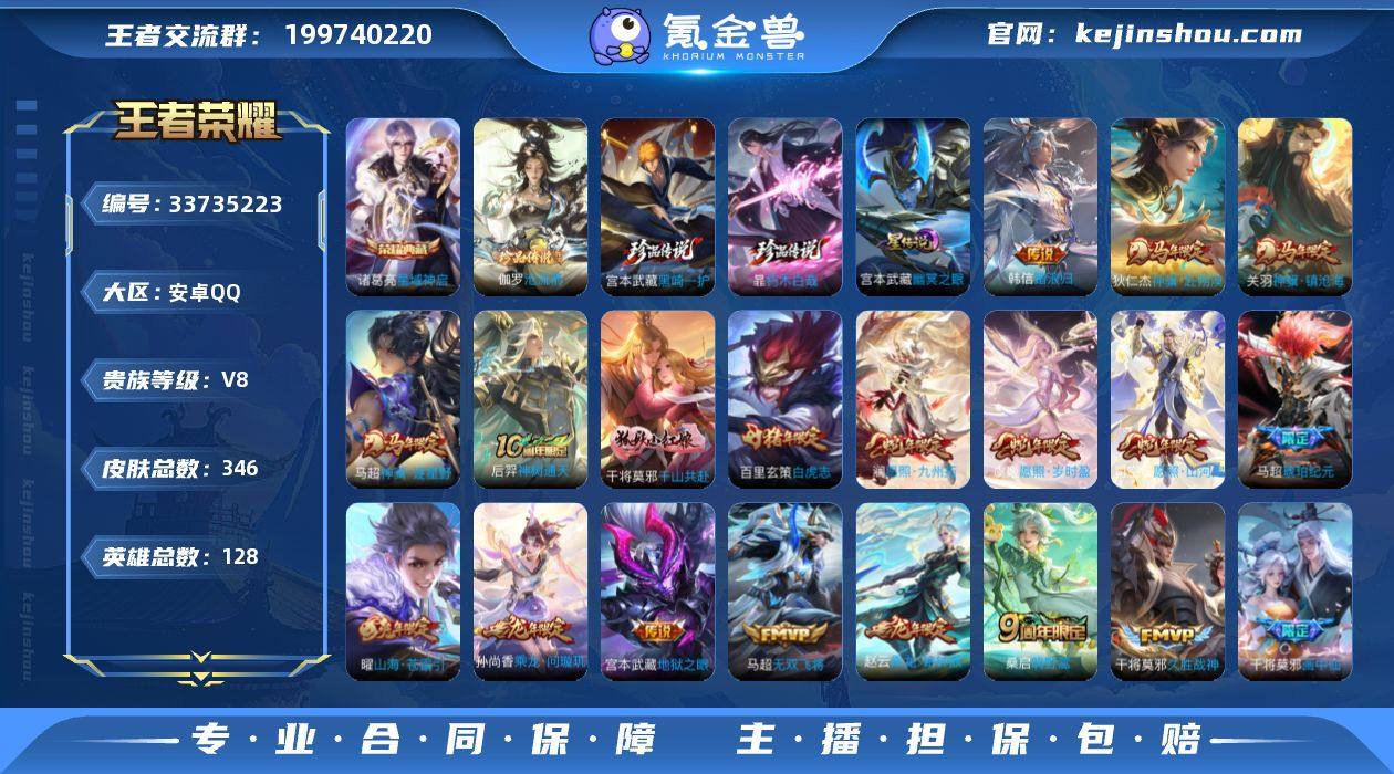 可换绑【多限定精品号·马超全皮·典藏诸葛·珍品暃宫本伽罗·龙限赵云孙尚香·画中仙·琥珀纪元·白虎志·孙行者·谪仙醉月·神威·岱宗·冰霜恋舞曲·至尊宝·差6000点卷v9】 幸运值213 21按键,1星传说,11王者印记,五级铭文240,无二次,安卓Q-V8-346皮肤-1典藏皮肤-3珍品传说-21传说-111史诗【英雄全皮】:孙权全皮,马超全皮,敖隐全皮,司空震全皮,空空儿全皮,影全皮【荣耀典藏】:诸葛亮星域神启【珍品传说】:伽罗沧流箭,宫本武藏黑崎一护,暃朽木白哉【星元皮肤】:宫本武藏幽冥之眼【传说皮肤】:韩信踏浪归,关羽神骥镇沧海,狄仁杰神骥赴朔漠,马超神骥逐星野,后羿神树通天,干将莫邪千山共赴,司空震愿照山河定,澜愿照九州拓,虞姬愿照岁时盈,桑启鸣野蒿,孙尚香乘龙问璇玑,赵云乘龙铭钟鼎,马超琥珀纪元,干将莫邪画中仙,曜山海苍雷引,百里守约碎云,马超无双飞将,虞姬启明星使,干将莫邪久胜战神,百里玄策白虎志,宫本武藏地狱之眼【限定皮肤】:蒙犽顽岩魄,蔡文姬夏日便利店,虞姬夏日便利店,姜子牙天穹之誓,杨戬破阵退雄兵,李白谪仙醉月,狄仁杰阴阳师,赵云皇家上将,墨子降魔,孙尚香蔷薇恋人,钟无艳超时空战士,元歌云间偶戏,元歌无心,甄姬落雪兰心...