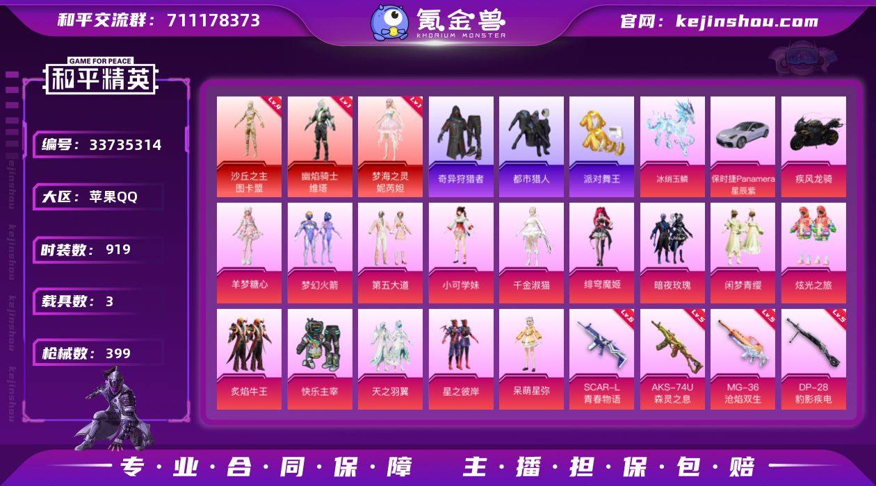 【特价出售】苹果Q-3红装6稀有3载具16粉装25特效枪23热门256套装399枪皮 141786热力值 23印记 历史绝世王牌18星 【3红装】 幽焰骑士-维塔 (1级) 梦海之灵-妮芮妲 (1级) 沙丘之主-图卡盟 (4级) 【6稀有】 奇异狩猎者 AKM-缤纷海域 都市猎人 浪漫天命 派对舞王 派对舞王(金靴子) 【3载具】 保时捷Panamera(星辰紫) 冰绡玉鳞 疾风龙骑 【16粉装】 梦幻火箭 绯穹魔姬 小舞灵珑 千金淑猫 炫光之旅 羊梦糖心 呆萌星弥 小可学妹 罪夜之冕 闲梦青缨 快乐主宰 第五大道 炙焰牛王 星之彼岸 暗夜玫瑰 天之羽翼 【25特效枪】 M416-五爪金龙 (5级) SCAR-L-金蛇镇世 (3级) SCAR-L-锦绣绵绵 (5级) P90-魔童闹海敖丙 (3级) M416-墨龙九天 (3级) AKM-幽焰骑士 (3级) AKS-74U-森灵之息 (5级) UMP45-宇宙意志 (3级) Kar98K-巳巳如意 (5级) Famas-翎光蝶翼 (5级) M762-电糖天使 (5级) MG-36-沧焰双生 (5级) DP-28-千金淑猫 (3级) DP-28-豹影疾电 (5级) AUG-暖羊咩咩 (5级) M338-回旋牧梦使 (4级) Mk14-盛世惊鸿 (3级) GROZA-镜光银凌 (5级) GROZA-精灵之光 (3级) AKM-星际浪客 (4级) AUG-星之彼岸 (4级) Mk14-福马献瑞 (1级) AA12-G-萌骑幻想 (2级) 平底锅-喜羊羊与灰太狼 (3级) SCAR-L-青春物语...
