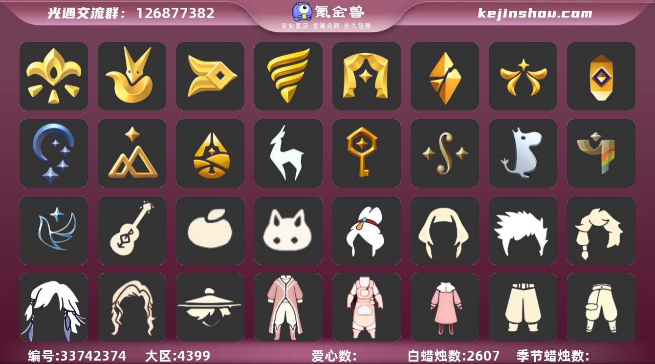 华为 手机账号 4珍稀物品 17毕业季 6毕业图 2607蜡烛 【珍稀物品】:白枭(帝企鹅发),玫瑰花,透明蝶翼斗,彩虹围巾(五塑彩带斗) 【季节已毕业】:青鸟季,集结季,小王子季(王子季),风行季,潜海季,表演季,破晓季,欧若拉季(欧若拉),追忆季,夜行季,拾光季,归巢季,九色鹿(九色鹿季),筑巢季,二重奏季,姆明季,彩染季 【完成地图】:晨岛,云野,雨林,霞谷,墓土(暮土),禁阁 【礼包】:橘子(大橘大利),兔子(玉兔头饰)(玉兔发饰)(兔子发饰),吉他(音韵吉他)(白吉他) 【裤子】:飞天裤(柔缎花边连)(九色鹿丝带裤),筑巢季·裤子(设计师长袍),青鸟尊贵蓬头裤子(蓝色燕尾服),妮妮裙子(妮妮长裙),王子服(小王子套装),蓝绿裤(高领舞服),武士裤,背带裤,搓澡巾,击剑裤 【面具】:夜行毕业面具(棕熊面具),呼吸面具(潜水面具),贴花面具(丛林黑面具),黄眉企鹅面具,辉光羚羊面具,凤凰面具 【面饰】:黑框眼镜(粗框眼镜),青鸟毕业面饰(青鸟面饰),红耳机 【项链】:围巾(肩带) 【发型】:小王子发型,单侧绑发(单边小辫),飞天盘发(九色鹿丸子头),留辫蘑菇头,虚荣,归巢毕业发型(五塑彩羽发),若笠(箬笠) 【头饰】:平顶帽,行军锅头盔(六边锅帽子)(双耳锅帽子),牛仔帽(西部帽),羽毛发饰(多羽发饰) 【斗篷】:黄色连帽披风(...