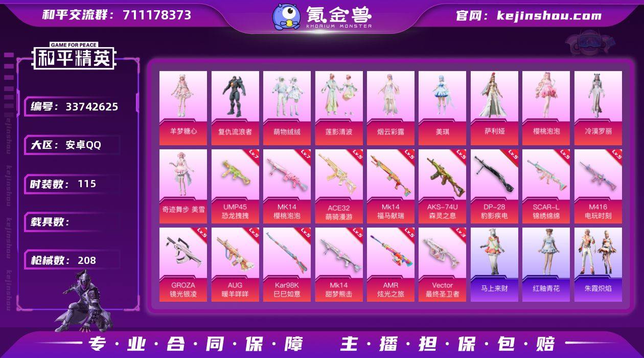YZJ17428-可二次-安卓Q-10粉装14特效枪5热门115套装208枪皮 59951热力值 极品小女号 地铁满天赋 200多天精英特权卡 美雪 美琪 樱桃泡泡 羊梦糖心 萌物绒绒 烟云彩露 莲影清波 晶辉眼罩 3级维克多最终圣卫者 满级UMP45恐龙拽拽 满级M4电玩 满级AUG暖羊 满级Mk14樱桃泡泡 11印记 历史卓越王牌9星 【10粉装】 美琪 萨利娅 奇迹舞步美雪 烟云彩露 樱桃泡泡 冷漠罗丽 羊梦糖心 莲影清波 萌物绒绒 复仇流浪者 【14特效枪】 SCAR-L-锦绣绵绵 (5级) M416-电玩时刻 (5级) AKS-74U-森灵之息 (5级) Kar98K-巳巳如意 (5级) Vector-最终圣卫者 (3级) DP-28-豹影疾电 (5级) AUG-暖羊咩咩 (5级) Mk14-樱桃泡泡 (7级) Mk14-甜梦熊击 (5级) AMR-炫光之旅 (5级) GROZA-镜光银凌 (5级) Mk14-福马献瑞 (5级) ACE32-萌骑漫游 (5级) UMP45-恐龙拽拽 (7级) 【5热门】 龟仙人 晶辉守护 大橘为重 破蛋小黄鸡 英勇保护者 【2飞行器】 绝色倾城飞行器 镜光幻境飞行翼 营地ID:935816773