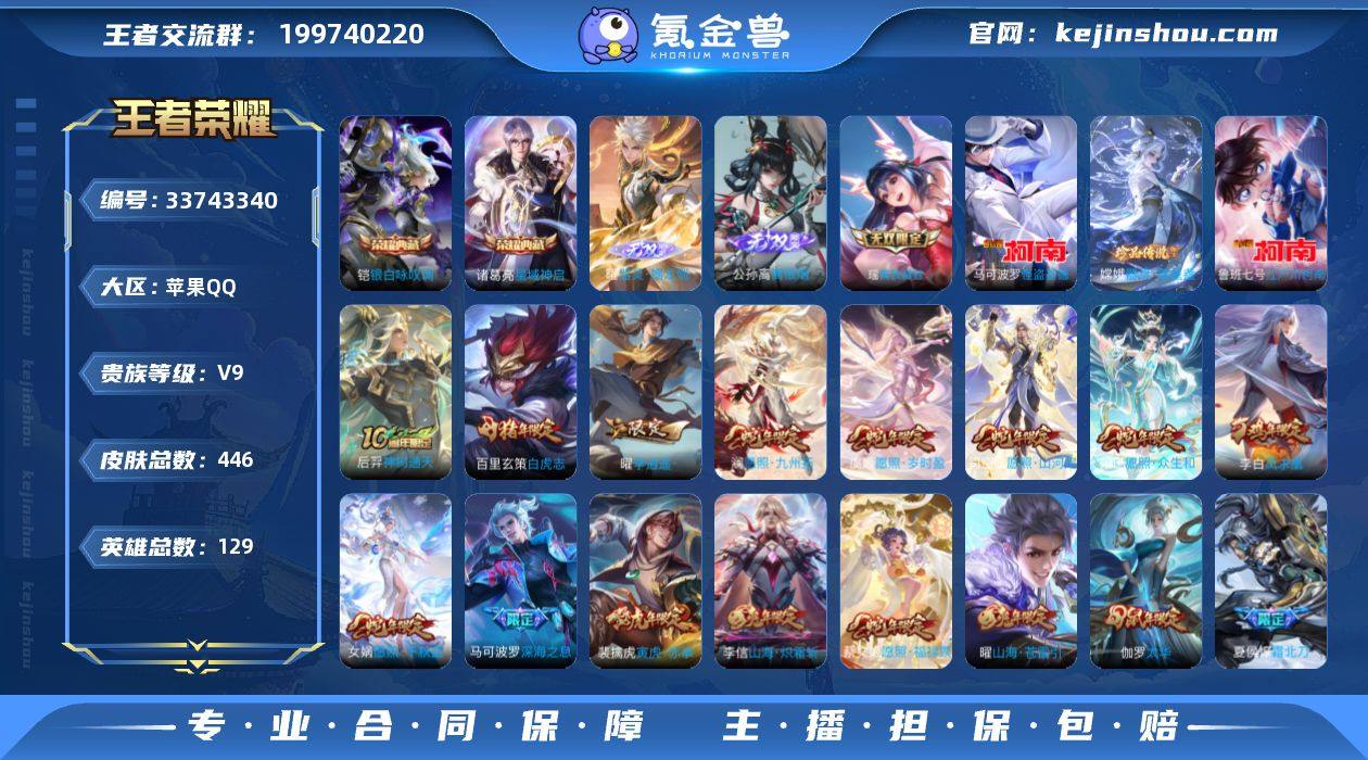 【WZ4843】贵族等级9/荣耀典藏数量2/传说皮肤数量55/史诗皮肤数量124/皮肤数量446/英雄数量129/段位至尊星耀/刘禅全皮/孙权全皮/苍全皮/敖隐全皮/阿古朵全皮/司空震全皮/戈娅全皮/空空儿全皮/星域神启/银白咏叹调/器灵·螭龙剑/离恨烟/真我赫兹(瑶)/器灵·落星盏/江户川柯南/怪盗基德/神树通天/星之鸣奏/千劫归真/愿照·山河定/愿照·千秋盛/愿照·众生和/愿照·九州拓/愿照·福禄聚/愿照·岁时盈/幻光神枪/祥瑞亨通/玄雷天君/映山客/鸣野蒿/夏侯惇霜北刀/大乔-时之奇旅/鲁班七号-时之奇旅/影龙天霄/遇见神鼓/妄想奇谈/电玩·雷克斯/山海·琳琅生/山海·苍雷引/山海·炽霜斩/怒海麟威/诗剑行/深海之息/无双飞将/启示之音/末日机甲-孙策/寅虎·赤拳/淬星耀世/乞巧织情/游龙清影/李逍遥/音你心动-周瑜/飞鸢探春/炽阳神光/启明星使/武圣/一念神魔/时之恋人-刘备/太华/黄金白羊座/久胜战神/黄金狮子座/白虎志/黄金射手座/武陵仙君/仲夏夜之梦/凤求凰/末日机甲-孙尚香/地狱之眼/地狱火/超时空战士-狄仁杰/狰(s8)/蔡文姬夏日便利店/虞姬夏日便利店/天穹之誓(s36)/谪仙醉月/阴阳师/纯白花嫁/凯尔特女王(s7)/皇家上将/引擎之心/时之彼端/狮舞东方/高山流水/死亡摇滚/玩趣恶龙/王者之锤/妖精王(s5)/...