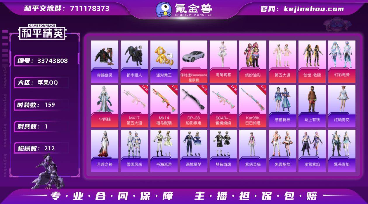【kyhp1582】苹果 手Q-6粉装-5特效枪-1载具-1粉色飞行器-60921热力值-14王牌印记-159套装-212枪皮 【热门品类】:粉装-缤纷油彩,套装-浪漫天命,套装-赤蝎幽灵,套装-都市猎人,套装-派对舞王,套装-小丑鱼,套装-龟仙人,套装-红熊茄茄 【粉色套装】:粉装-缤纷油彩,粉装-第五大道,套装-创世·救赎,粉装-幻彩电音,角色-宁雨蝶,角色-鸢尾珑雾 【粉色枪皮等级】:SCAR-L-锦绣绵绵(五级),Kar98K-巳巳如意(五级),Mk14-福马献瑞(五级),M417-第五大道(六级),DP-28-豹影疾电(五级) 【粉色载具】:保时捷Panamera(星辰紫) 【粉色枪皮】:SCAR-L-锦绣绵绵,Kar98K-巳巳如意,Mk14-福马献瑞,M417-第五大道,DP-28-豹影疾电 【粉色飞行器】:炫彩糖果飞行器 【粉色降落伞】:梦幻火箭降落伞,洛神天依降落伞,第五大道降落伞,仲夏莫吉托降落伞,未来歌姬降落伞,镜域双华降落伞,金丰海韵降落伞,千金淑猫降落伞,无垠阁降落伞,异瞳寒姬降落伞,炫彩糖果降落伞 【稀有套装】:套装-龟仙人,套装-绒宝小鹅,套装-雪国风尚,套装-炫彩糖果,套装-马上有钱,套装-雏菊兔兔,套装-萝兰蝴蝶,套装-小熊娃娃,套装-糖糖葫芦,套装-青团波波,套装-棉花软糖,角色-摩登魅猫,套装...