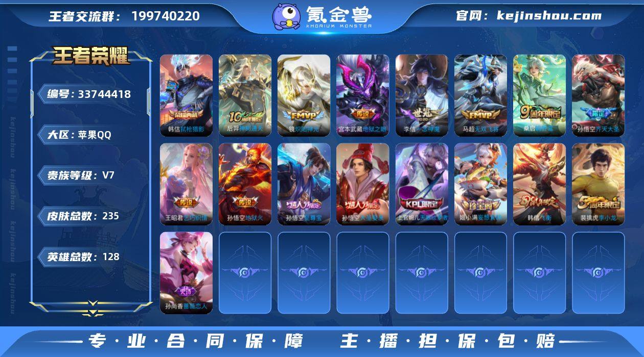 苹果Q 可二次 1典藏10传说128英雄235皮肤 弑枪猎影 铠琥珀纪元 神树通天 鸣野蒿 齐天大圣 乞巧织情 无双飞将 地狱火 炽阳神光 一念神魔 地狱之眼 万灵启世 涂山容容 至尊宝 飞衡 逐霄之志 天狼绘梦者 大圣娶亲 蓝屏警告 朔望之晖 星空之诺 银河之约 冰冠公主 暗影游猎 原初追逐者 黎明之约 云间偶戏 苍穹之光 电玩小子 龙骑士 织梦人 黄忠百相守梦 灵蛊蚀心 绮世丹青 电玩爆裂旋风 原初探秘者 李小龙 水晶猎龙者 暗隐猎兽者 地狱岩魂 曙光守护者 蔷薇恋人 黄金分割率 舞动绿茵 妄想食味 千年之狐 紫霞仙子 圣诞恋歌 幽灵船长 乘风破浪 末日机甲男 节奏热浪 时之恋人女 街头霸王 箭羽风息 月团寄思 鬼剑武藏 花好人间 烛龙 重明 穷奇 御狮 御霄 御銮 朔风刀 混沌棋 疑决卦 醍醐杖 万华元夜 克喵 演武夺筹 驱傩正仪 重装意志 拳王 女仆咖啡 霸王丸 敏锐之力 丁香结 科学大爆炸 皇家上将 擒涛扼浪 王者荣耀账号