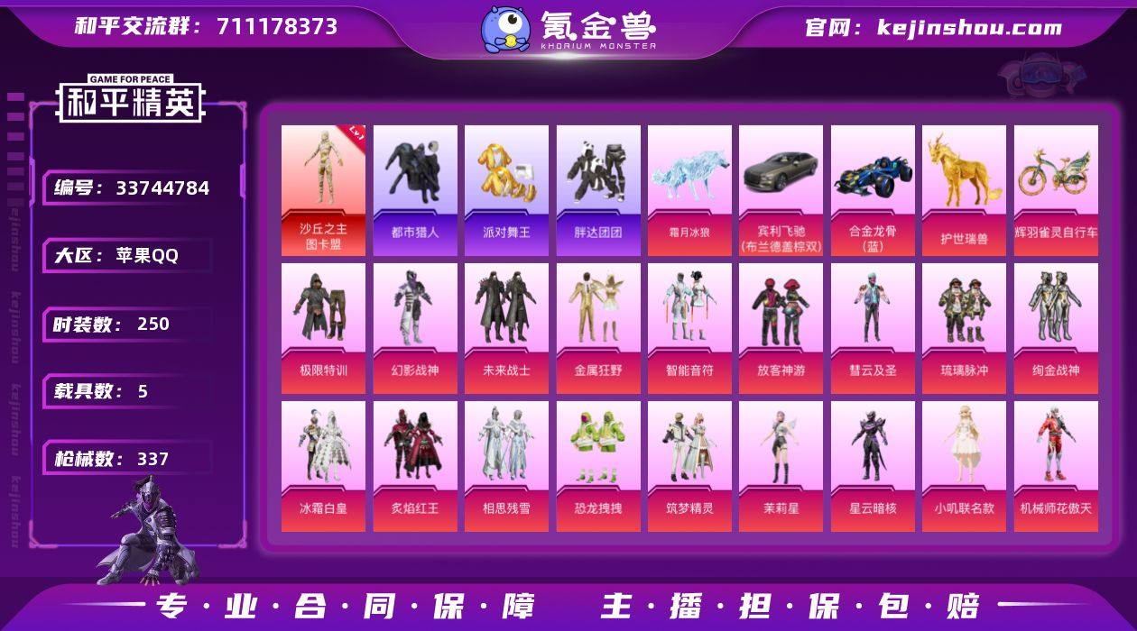 【kyhp1617】苹果 手Q-1神装-23粉装-18特效枪-5载具-17粉色飞行器-123027热力值-17王牌印记-250套装-337枪皮 【红色神装等级】:沙丘之主-图卡盟(一级) 【红色角色神装】:沙丘之主-图卡盟 【热门品类】:套装-浪漫天命,套装-都市猎人,套装-派对舞王,角色-军刀雅典娜,套装-胖达团团,套装-龟仙人,套装-暗影哥特,角色-Mark.06 【粉色套装】:粉装-极限特训,粉装-幻影战神,粉装-未来战士,粉装-金属狂野,粉装-智能音符,粉装-放客神游,粉装-彗云及圣,粉装-琉璃脉冲,粉装-绚金战神,粉装-冰霜白皇,粉装-炙焰红王,粉装-相思残雪,粉装-恐龙拽拽,粉装-筑梦精灵,角色-茉莉星,角色-星云暗核,角色-小叽联名款,粉装-机械师花傲天,粉装-蜜语绒猫,角色-千金淑猫,粉装-星穹咏叹调,角色-冷漠罗丽,角色-荧海星豚 【粉色枪皮等级】:AKM-绿萝繁花(五级),AKM-幽焰骑士(三级),SCAR-L-天蓬元帅(九级),M416-暖熊萌萌(六级),GROZA-镜光银凌(五级),AUG-暖羊咩咩(五级),AUG-圣斗士星矢(五级),M762-鬼刀(五级),蜜獾-荧海星豚(五级),UMP45-恐龙拽拽(七级),Vector-环太平洋(四级),AKS-74U-星穹咏叹调(五级),P90-冷漠罗丽(五级),Kar98K-巳巳如意(五级),DP-28-千金...
