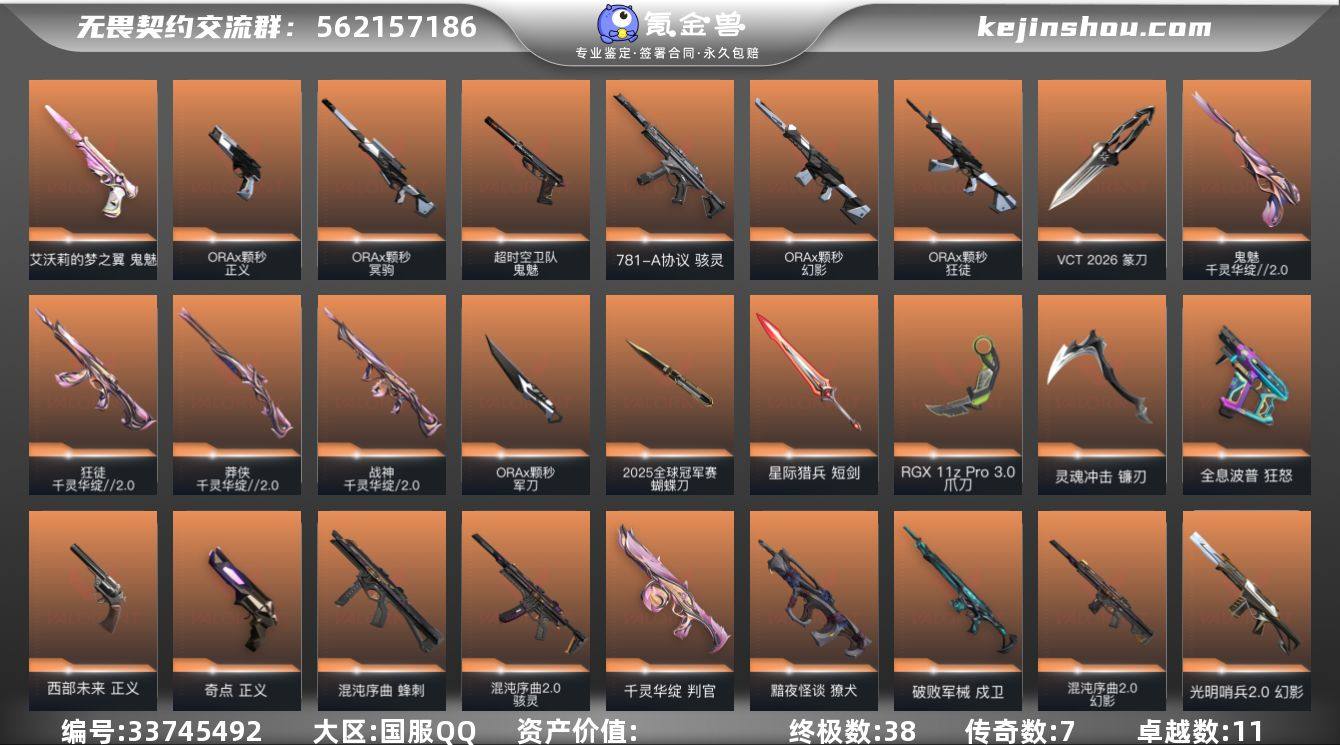 【960409】【wwxb885】LV等级76/皮肤总价值102360/段位白银/总皮肤数量103/刀皮数量15/枪皮数量88/套装数量4/具体详情请看图/2025全球冠军赛套装/VCT 2026 赛季套装/千灵华绽//2.0套装/ORA x 颗秒套装/幻棱/炼狱/维斯/暮蝶/钛狐/壹决/铁臂/捷风/雷兹/幽影/不死鸟/贤者/猎枭/蝰蛇/零/芮娜/奇乐/尚勃勒/霓虹/斯凯/夜露/星礈/K/O/海神/盖可/黑梦/钢锁/近战武器-2025全球冠军赛 蝴蝶刀/近战武器-蒙太奇 战斧/近战武器-碎心裂刃/近战武器-VCT 2026 篆刀/近战武器-流风回雪/近战武器-ORA x 颗秒 军刀/近战武器-RGX 11z Pro//3.0 爪刀/近战武器-黑波之刃/近战武器-镭切/近战武器-威龙之刃/近战武器-金角扇/近战武器-灵魂冲击 镰刃/近战武器-天御刀/近战武器-夜刃诡镰/近战武器-星际猎兵 短剑/狂徒-2025全球冠军赛/狂徒-洪荒怒焰/狂徒-混沌序曲/狂徒-ORA x 颗秒/狂徒-千灵华绽//2.0/幻影-光明哨兵//2.0/幻影-千灵华绽/幻影-混沌序曲//2.0/幻影-ORA x 颗秒/幻影-侦察力量/幻影-蒙太奇/戍卫-破败军械/戍卫-般若假面/獠犬-黯夜怪谈/冥驹-偃月苍龙/冥驹-ORA x 颗秒/冥驹-堕天遗武/冥驹-掠影/飞将-盖亚的复仇/莽侠-RGX 11z Pro//3.0/莽侠-千灵华绽//2.0/战神-千灵华绽//2.0/战神-光明哨兵/...