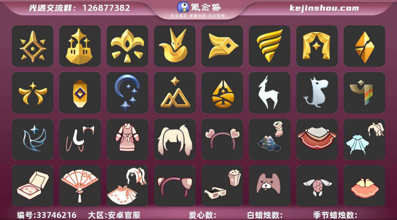 账号类型: 手机账号 季节已毕业: 预言季,梦想季,小王子季,风行季,潜海季,表演季,破晓季,欧若拉季,集结季,夜行季,追忆季,拾光季,归巢季,九色鹿季,姆明季,彩染季,青鸟季 完成地图: 晨岛,云野,雨林,霞谷,暮土,禁阁,全图毕业 珍稀物品: 阿努比斯(狗头),白枭,透明蝶翼斗,玫瑰花 礼包: 蝙蝠套,巫师,围巾,星球斗,小狐狸,欧若拉之翼,绊爱,大铁头,鹿角,蜘蛛斗,牛仔裤,兔子鞋,运动鞋,秋千,茶桌,白绒金,瑞雪,福娃,跷跷板,奔跑裤子,人声乐器,奔跑发型,彩虹帽,雪花球,橘子,粽叶,贝壳,红伞,兔子,枯角,雪花,鲤鱼,tgc,水母,星月头饰,彩虹耳钉,彩虹耳机,新年裤,奥利奥,海螺,四叶草,暗彩装扮,爱心眼镜,新年耳钉,创始人,海蓝波浪发型,满月耳坠,姆明饰品套装,树精肩饰,妮妮斗篷,海龟斗篷,衔福献瑞礼包,献瑞折扇礼包,渐变双马尾发型礼包,心心相印发饰礼包,小狗周年发饰,潮汐套装礼包,粽子发饰礼包,必胜客联动装扮礼包,必胜客联动分享披萨背饰礼包,青衫落拓礼包,周年影院套餐礼包,缤纷飘带斗篷礼包,皮皮猫套装礼包 裤子: 武士裤,背带裤,白棉裤,搓澡巾 面具: 黄鼠狼,红狐狸,阿努比斯 面饰: 红耳机,黑框眼镜 项链: 围巾 发型: 蝴蝶结,正太,樱花,公主头,虚荣,猫耳,白枭 头饰: 花环 斗篷: 白金,红金,白...