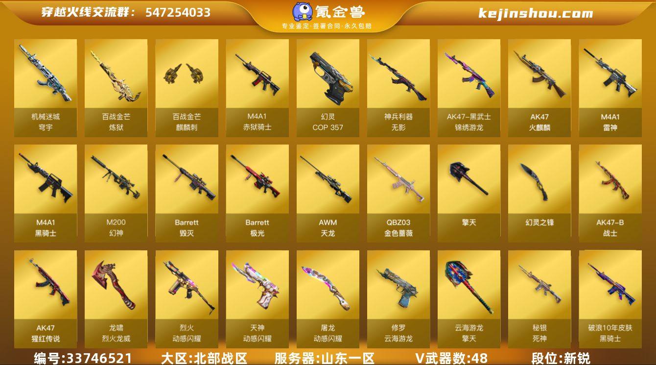 【ky7116】山东一区-50V-1王者武器数-0炫金武器数 【热门武器】:QBZ03-金色蔷薇,M200-幻神,死亡之眼,M4A1-黑骑士,雷神-小红,COP 357-幻灵 【音效卡】:M4A1-黑骑士音效卡,Barrett-毁灭音效卡,Barrett-极光音效卡,炼狱-百战金芒-庆典舞曲音效卡 【皮肤】:幻神-宠儿-2021MVP,M200-幻神-N9-2022MVP,雷神-暗月,雷神-R.LGD-CFPLS18冠军,雷神-维纳斯皮肤,M4A1-再燃火线,炼狱-星空,烈龙-星空,火麒麟-雷神*2,AK47-火麒麟-传奇EVEN,火麒麟-巅峰荣耀,火麒麟-心动糖果,毁灭-暗月,毁灭-星空,毁灭-航天科技皮肤,毁灭-英雄计划 皮肤,黑龙-能量核心,黑龙-暗月,黑骑士-暗月,黑骑士-破浪10年皮肤,无影-暗月,死神-秘银,天启-暗月,烈火-动感闪耀 皮肤,战神-紫绶金章皮肤*4,战神-流金岁月皮肤,天龙-秘银,AWM-天龙-传奇70KG,轻型军用手斧-再燃火线 【角色】:太空指挥官,奇洋探员,乔伊教练,修道士,云海玲珑,葵-阿尔法武装,暗夜-X,电竞少女,芳心审判者,飞虎队-X,风暴女,嘉年华灵狐,兰-空鹰,兰-新年限定,猎狐者-追月,灵狐者-X,灵狐者-黄金海岸,灵狐者-职业经理,龙儿,麻雀,曼陀罗-X,潘多拉-X,青霞仙子,斯沃特-X,兔囡囡,雪莉杨-摸金校...