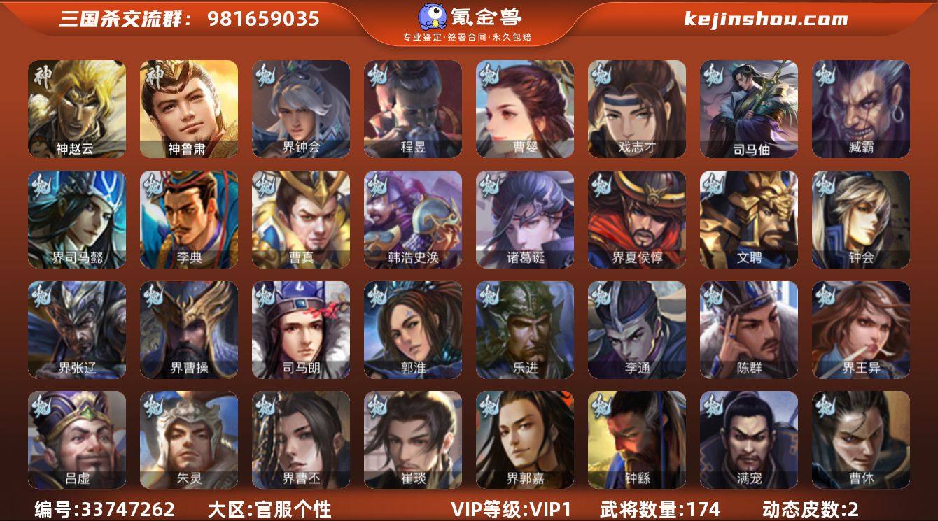 神赵云,神鲁肃,界钟会,曹婴,戏志才,程昱,花鬘,界徐盛,势太史慈,许攸,SP关羽,SP曹仁,乐进,曹昂,诸葛诞,朱灵,文聘,SP姜维,钟会,曹冲,郭淮,满宠,界王异,界曹操,界司马懿,界夏侯惇,界张辽,界郭嘉,李典,曹真,韩浩史涣,陈群,曹叡,曹休,钟繇,司马朗,李通,吕虔,界曹丕,崔琰,司马伷,臧霸,SP孙尚香,夏侯霸,马良,关兴张苞,廖化,界马岱,关平,刘封,界关兴张苞,界刘备,界马超,SP徐庶,吴懿,周仓,张松,夏侯氏,界庞统,界刘禅,彭羕,界张嶷,李遗,诸葛果,甘夫人,势陈祗,孙茹,诸葛瑾,孙鲁育,程普,韩当,潘璋马忠,虞翻,界甘宁,界吕蒙,界黄盖,界周瑜,界大乔,界陆逊,孙鲁班,朱桓,孙登,潘濬,许贡,孙邵,界孙鲁班,界全琮,界朱治,张布,势黄祖,伏完,界袁术,伏皇后,李儒,华雄,袁术,界华佗,界吕布,公孙瓒,蔡夫人,公孙渊,刘繇,界刘表,谋高顺,贾充,李傕郭汜,势田丰,神赵云-鳞振九霄(动态),曹丕-龙年中秋(动态)