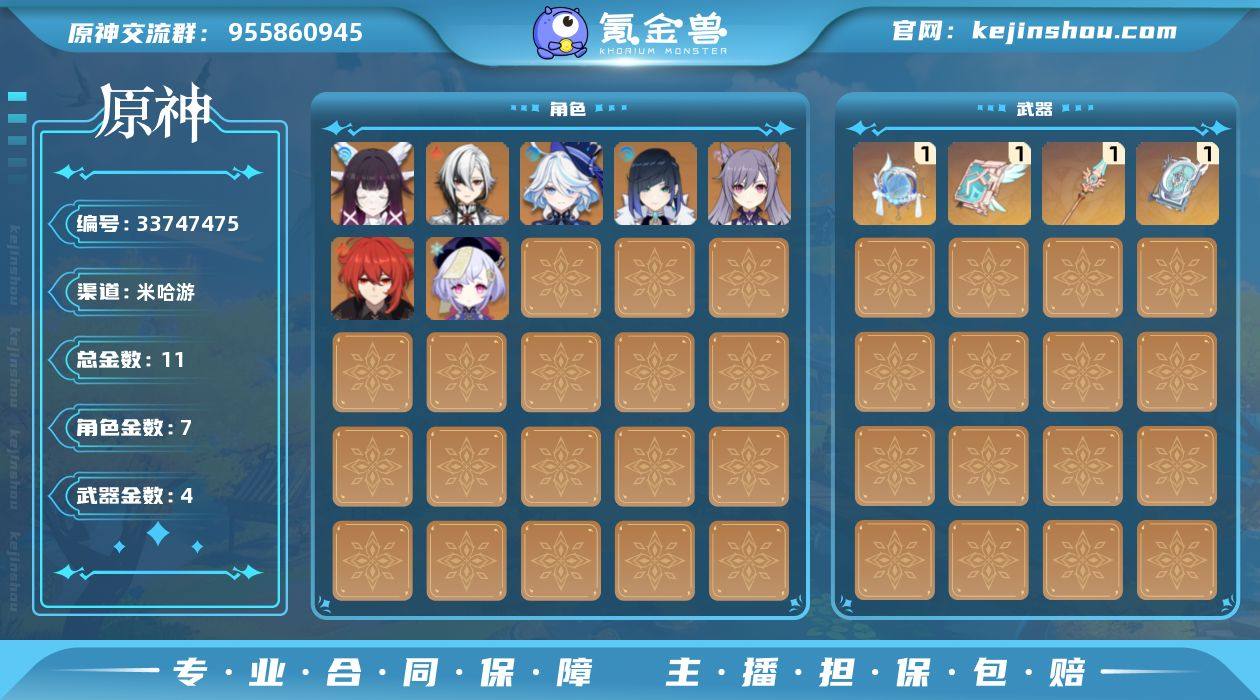【YS1544】55级/11黄/女主/7个五星角色/4个五星武器/阿蕾奇诺/芙宁娜/哥伦比娅/夜兰/刻晴/七七/迪卢克/帷间夜曲/天空之卷/四风原典/天空之脊