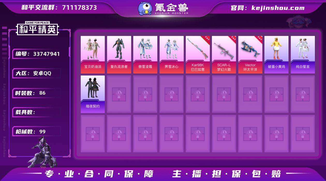 安卓 手Q【梦幻火箭 宝贝奶油派】6粉装-3特效枪-0载具-1粉色飞行器-31222热力值-6王牌印记-86套装-99枪皮 【热门品类】:粉装-梦幻火箭 【粉色套装】:粉装-宝贝奶油派,粉装-梦幻火箭,粉装-橘柚倾心,角色-复仇流浪者,粉装-傲雪凌霜,粉装-霁雪冰心 【粉色枪皮等级】:SCAR-L-梦幻火箭(六级),Vector-环太平洋(五级),Kar98K-巳巳如意(四级) 【粉色枪皮】:SCAR-L-梦幻火箭,Vector-环太平洋,Kar98K-巳巳如意 【粉色飞行器】:炫彩糖果飞行器 【粉色降落伞】:甜心宝贝降落伞,梦幻火箭降落伞,甜蜜誓约降落伞,香水柠檬降落伞,垂柳戏鸭降落伞,拂晓神骑降落伞,幻彩电音降落伞,炫彩糖果降落伞 【稀有套装】:套装-雪国风尚,套装-迅捷龙虾,套装-紫幽梦,套装-蓝冰羽,角色-瑰梦爱神,套装-极速光影 【稀有枪皮】:AKM-龙的传人,M16A4-幻世战舞者,M16A4-甜心亚梦,SCAR-L-炫彩节奏,SCAR-L-玉兔迎春,M416-糯团青竹,M416-红色方程式,GROZA-彩虹符号,GROZA-田园牧歌,AUG-天降萌叽,AUG-耀粉歌者,M762-天降萌叽,M762-彩虹甜喵,M762-暖熊萌萌,Mk47-荒漠赏金,G36C-星穹咏叹调,AC-VAL-天降萌叽,AC-VAL-彩虹甜喵,AC-VAL-甜心亚梦,蜜獾-娇憨猪猪,UZI-娇憨猪猪...