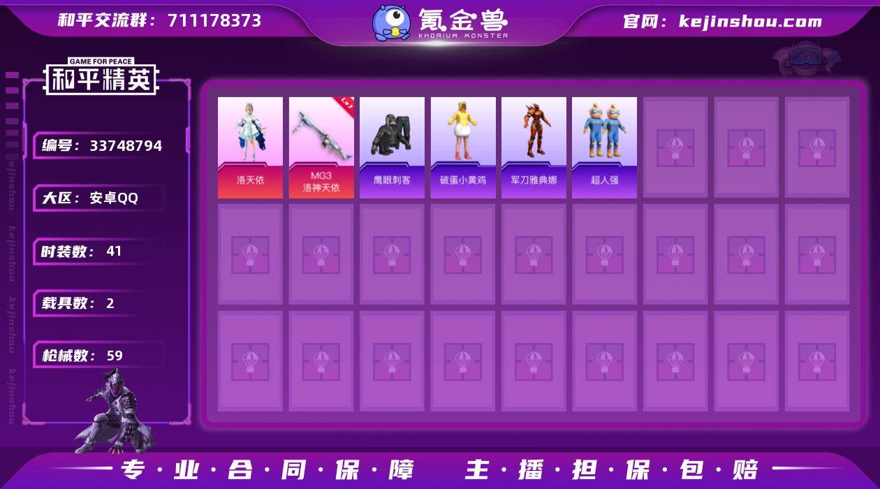 安卓 手Q【梦幻火箭洛天依 2载具 二级保时捷911 敞篷版(小暴龙)】2粉装-4特效枪-2载具-3粉色飞行器-21053热力值-2王牌印记-41套装-59枪皮 【红色载具】:保时捷911 敞篷版(小暴龙)(二级) 【热门品类】:粉装-梦幻火箭,角色-军刀雅典娜 【粉色套装】:粉装-梦幻火箭,角色-洛天依 【粉色枪皮等级】:ACE32-萌骑漫游(二级),AKS-74U-森灵之息(五级),Mk14-福马献瑞(五级),MG3-洛神天依(四级) 【粉色载具】:保时捷911 敞篷版(小暴龙),法拉利LaFerrari(赛车红) 【粉色枪皮】:ACE32-萌骑漫游,AKS-74U-森灵之息,Mk14-福马献瑞,MG3-洛神天依 【粉色飞行器】:梦幻火箭飞行器,幻海精灵飞行器 【粉色降落伞】:洛神天依降落伞,环太平洋降落伞,猪猪侠降落伞,无垠阁降落伞,极意拳锋降落伞,暮色玫影降落伞,天马神君降落伞 【稀有套装】:套装-雪国风尚,套装-马上有钱,套装-迅捷龙虾,套装-遗迹猎人,角色-绯色魅影,套装-书海巡游,套装-画境星梦,套装-琴音绮想,套装-雨过天青,套装-红釉青花,角色-皓月伶影 【稀有枪皮】:AKM-龙的传人,SCAR-L-夜灯,GROZA-影袭,AUG-耀粉歌者,QBZ-洛神天依,Mk47-洛神天依,ACE32-画境星梦,UZI-红色方程式,UMP45-夜灯,...