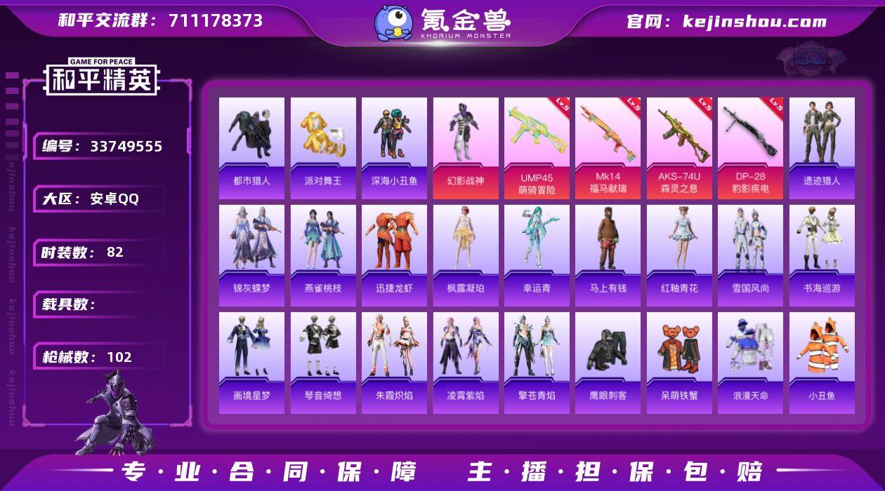 YZJ17349 可二次 安卓Q-4稀有1粉装4特效枪9热门 身法小号 地铁满天赋 幻影战神 都市 金鞋 小丑鱼 深海小丑鱼 红眼罩 ST战队服 82套装102枪皮 27116热力值 2印记 历史卓越王牌8星 【4稀有】 都市猎人 浪漫天命 派对舞王 派对舞王(金靴子) 【1粉装】 幻影战神 【4特效枪】 AKS-74U-森灵之息 (5级) DP-28-豹影疾电 (5级) Mk14-福马献瑞 (5级) UMP45-萌骑冒险 (5级) 【9热门】 小丑鱼 呆萌铁蟹 鹰眼刺客 深海小丑鱼 ST战队服 暗影哥特 忍者信条 漫步者 弄潮海豚 【3头盔】 幻影战神头盔 深海小丑鱼头盔 金羽特工头盔 【1背包】 幻影战神背包 营地ID:1014928239