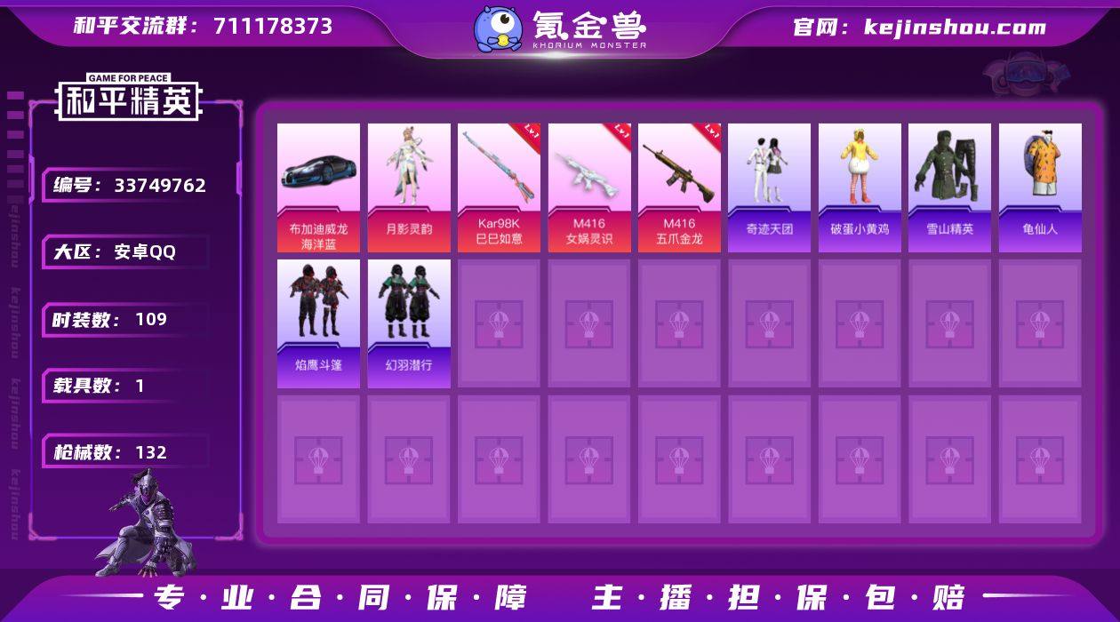 安卓 手Q【奇迹天团 深海小丑鱼 满级五爪金龙M416 1载具】1粉装-4特效枪-1载具-0粉色飞行器-42810热力值-9王牌印记-109套装-132枪皮 【热门品类】:套装-深海小丑鱼,套装-小丑鱼,套装-龟仙人 【粉色套装】:角色-月影灵韵 【粉色枪皮等级】:M416-五爪金龙(七级),M416-女娲灵识(三级),Kar98K-巳巳如意(五级),DP-28-豹影疾电(五级) 【粉色载具】:布加迪威龙(海洋蓝) 【粉色枪皮】:M416-五爪金龙,M416-女娲灵识,Kar98K-巳巳如意,DP-28-豹影疾电 【粉色降落伞】:甜心宝贝降落伞,莲影清波降落伞,拳皇·狂花道降落伞,千金淑猫降落伞,晶梦幻蝶降落伞,异瞳寒姬降落伞 【稀有套装】:套装-龟仙人,套装-巳巳如意,角色-达芬奇,套装-火种守卫者,套装-糖糖葫芦,套装-青团波波,套装-燕燕于飞,套装-鱼渊荷华,角色-海琴烟,套装-樱梦幻音,套装-霓虹热舞 【稀有枪皮】:AKM-破晓战魂,AKM-龙的传人,M16A4-幻世战舞者,M16A4-甜心亚梦,M16A4-莲影清波,M16A4-千金淑猫,SCAR-L-玉兔迎春,M416-糯团青竹,GROZA-彩虹符号,AUG-天降萌叽,QBZ-银河战甲,M762-天降萌叽,M762-奇异狩猎者,M762-彩虹甜喵,M762-拳皇97,M762-牛气冲天,AC-VAL-天降萌叽,AC-VAL-快闪甜...