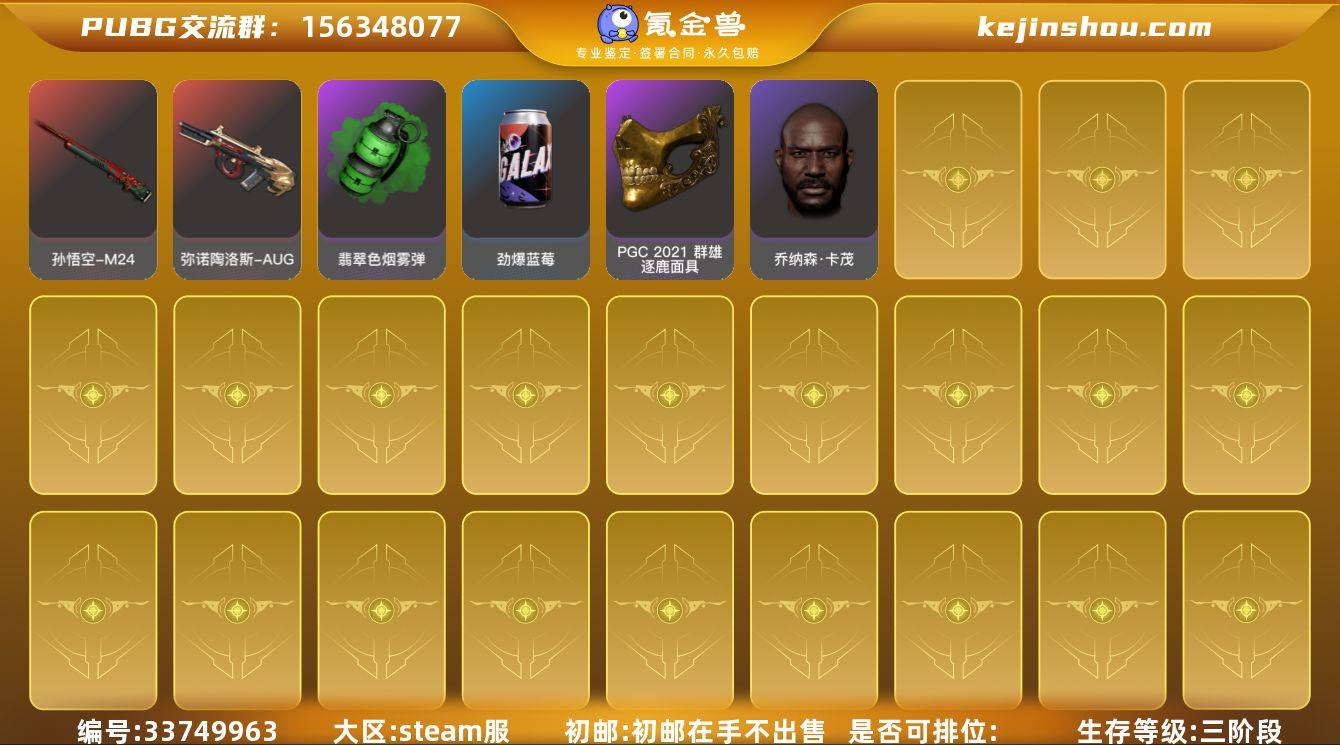CC15929/可排位/3段/45级/8张图纸/黄色烟雾弹/粉色烟雾弹/阿斯顿马丁SUV/翰娜/10级孙悟空M24/8级暗影mk12/1级时空M4/1级午夜惊魂98k/电磁背包/拉风龙套装/萨芬裤/黑鬼/2渔夫帽/白熊头