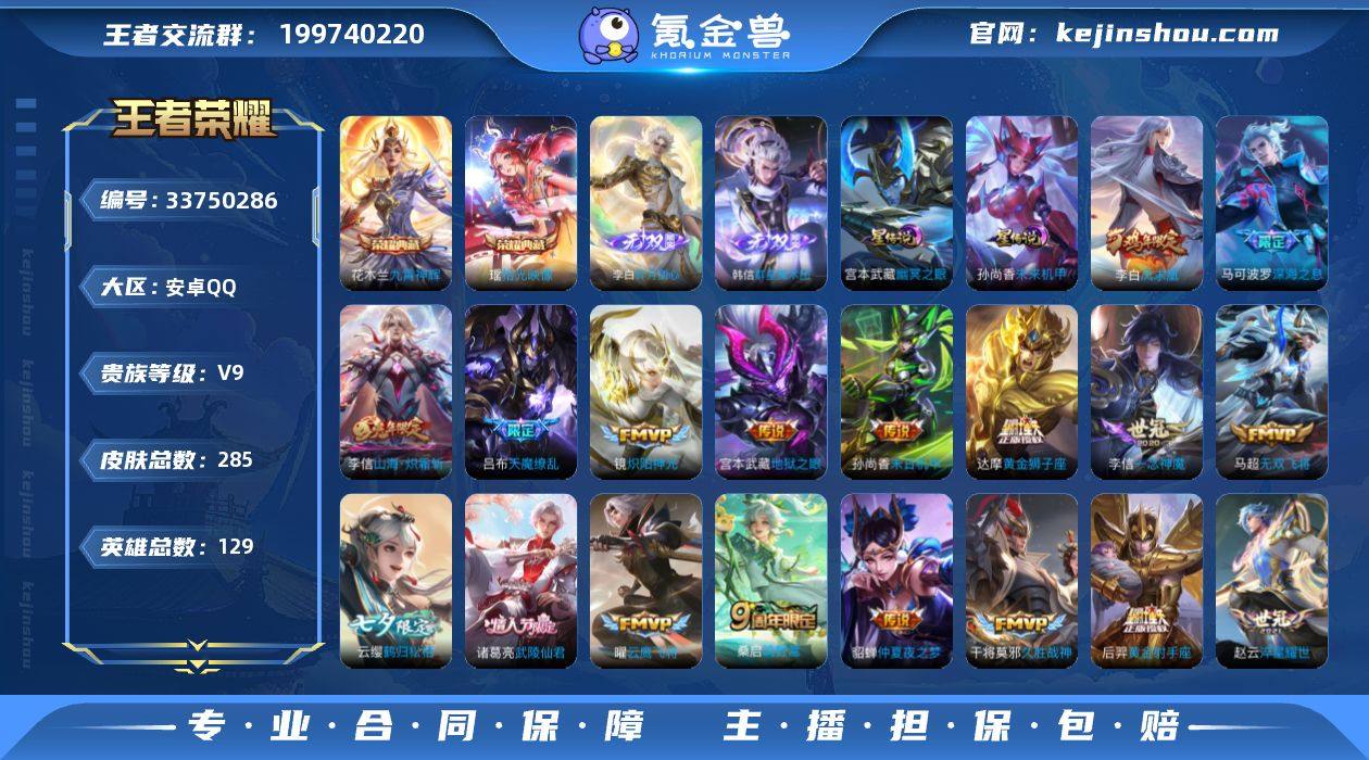 【aswz2273】安卓Q-V9-最强王者段位-129英雄-285皮肤-2典藏皮肤-2无双-24传说-89史诗 【英雄全皮】:孙权全皮,敖隐全皮 【荣耀典藏】:花木兰九霄神辉,瑶拾光映像 【无双皮肤】:韩信群星魔术团,李白碎月剑心 【传说皮肤】:桑启鸣野蒿,云缨鹤归松栖,李信山海炽霜斩,马可波罗深海之息,马超无双飞将,露娜启示之音,赵云淬星耀世,王昭君乞巧织情,小乔音你心动,镜炽阳神光,虞姬启明星使,曜云鹰飞将,李信一念神魔,张良黄金白羊座,干将莫邪久胜战神,达摩黄金狮子座,花木兰冠军飞将,后羿黄金射手座,诸葛亮武陵仙君,貂蝉仲夏夜之梦,李白凤求凰,孙尚香末日机甲,宫本武藏地狱之眼,吕布天魔缭乱 【限定皮肤】:姜子牙天穹之誓,狄仁杰阴阳师,赵云皇家上将,嬴政白昼王子,鲁班七号狮舞东方,庄周高山流水,高渐离死亡摇滚,高渐离玩趣恶龙,白起夜都怪侠,芈月重明,吕布天魔缭乱,吕布猎兽之王,周瑜赤莲之焰,元歌无心,夏侯惇朔风刀,甄姬幽恒,曹操烛龙,典韦穷奇,马可波罗深海之息,狄仁杰魔术师,狄仁杰万华元夜,达摩沙漠行僧,项羽海滩派对,老夫子醍醐杖,关羽冰锋战神,程咬金演武夺筹,露娜启示之音,兰陵王驯魔猎人,兰陵王金庭之子,孙悟空至尊...