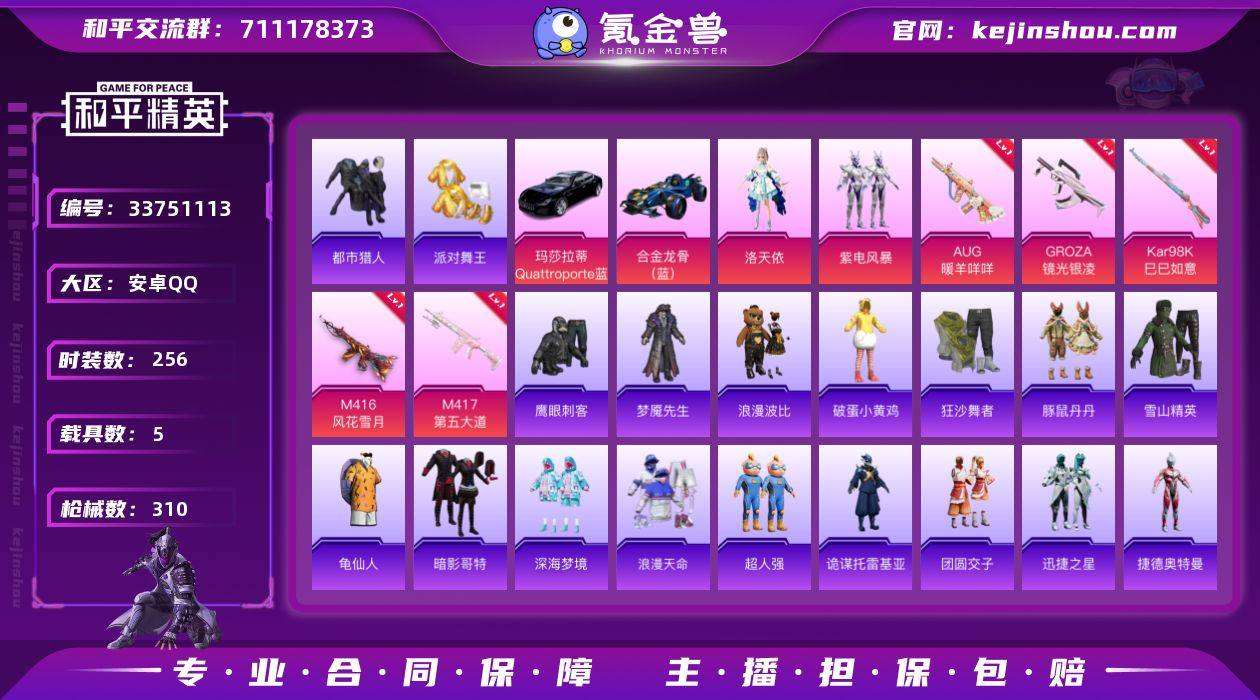 安卓 手Q【都市紫螳螂第五大道金靴子 满级风花雪月M416 5载具】6粉装-12特效枪-5载具-7粉色飞行器-107812热力值-18王牌印记-256套装-310枪皮 【热门品类】:套装-浪漫天命,套装-都市猎人,套装-派对舞王,套装-深海小丑鱼,旭日初心兜帽大衣,套装-龟仙人,套装-暗影哥特,套装-浪漫波比 【粉色套装】:角色-洛天依,角色-初号机款机体服,粉装-恐龙拽拽,粉装-紫电风暴,粉装-第五大道,角色-异瞳寒姬 【粉色枪皮等级】:M416-风花雪月(七级),GROZA-镜光银凌(五级),AUG-暖羊咩咩(五级),AKS-74U-森灵之息(四级),Kar98K-巳巳如意(五级),Kar98K-圣域龙灵(三级),Mk14-福马献瑞(五级),M417-第五大道(四级),AA12-G-萌骑幻想(四级),DP-28-豹影疾电(五级),破片手榴弹-贪吃小熊(六级) 【粉色载具】:法拉利LaFerrari(电光蓝),法拉利Roma(纽博格林银),玛莎拉蒂Quattroporte(夜幕蓝),合金龙骨(蓝),黑曜夜骑 【粉色枪皮】:M416-风花雪月,GROZA-镜光银凌,AUG-暖羊咩咩,ACE32-百变纱华,AKS-74U-森灵之息,Kar98K-巳巳如意,Kar98K-圣域龙灵,Mk14-福马献瑞,M417-第五大道,AA12-G-萌骑幻想,DP-28-豹影疾电,破片手榴弹-贪吃小熊 【粉色飞行器】:香车宝马飞...