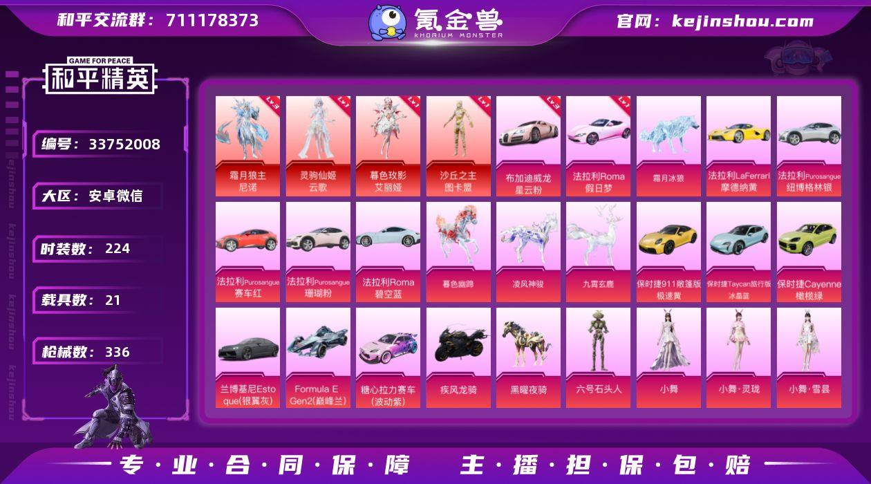【LHPD922】【新101/红螳螂/一级法拉利恩佐/9级灵猫魔法师M4/9级暮色AK/】安卓 微信-4神装-33粉装-31特效枪-21载具-23粉色飞行器-169696热力值-12王牌印记-224套装-336枪皮【红色载具】:法拉利Roma(假日梦)(一级),布加迪威龙(星云粉)(三级)【红色神装等级】:霜月狼主-尼诺(三级),灵驹仙姬-云歌(一级),暮色玫影-艾丽娅(一级),沙丘之主-图卡盟(一级)【红色角色神装】:霜月狼主-尼诺,灵驹仙姬-云歌,暮色玫影-艾丽娅,沙丘之主-图卡盟【热门品类】:粉装-梦幻火箭,粉装-繁龙极客,套装-龟仙人,角色-Mark.06,角色-六号稻草人【粉色套装】:粉装-梦幻火箭,角色-洛天依,角色-2号机款机体服,角色-复仇流浪者,粉装-仲夏莫吉托,超级赛亚人-孙悟空,粉装-天星战神,粉装-闲梦青缨,粉装-莲影清波,粉装-傲傲奶龙,角色-圣堂之誓,角色-小叽联名款,粉装-繁龙极客,角色-烟云彩露,角色-严莉莉,角色-小蓝,角色-美雪,角色-美琪,角色-星梦奇缘,粉装-金丰海韵,角色-狂花道·不知火舞,角色-萨利娅,粉装-雪月幻音,角色-狂魅哈莉,角色-星渊,角色-羊梦糖心,角色-回旋牧梦使,角色-月中灵,人物-小舞,人物-小舞·灵珑,人物-小舞·雪昙,人物-小舞·恋语,角色-六号...