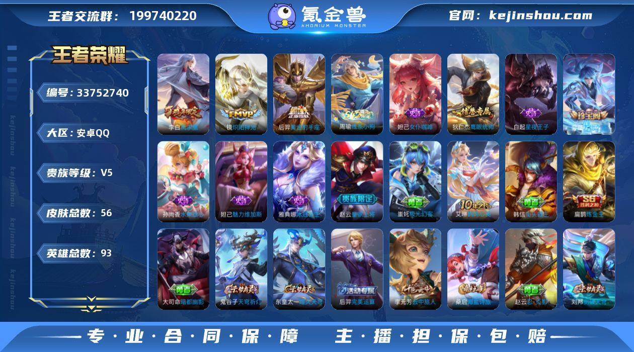 W16498 可立即换绑无需挂单养号 铭文满级 传说3 夺宝102 安卓Q-V5-尊贵铂金IV段位-93英雄-56皮肤-3传说-8史诗 【传说皮肤】:镜炽阳神光,后羿黄金射手座,李白凤求凰 【限定皮肤】:狄仁杰阴阳师,赵云皇家上将,扁鹊炼金王,达摩沙漠行僧,项羽海滩派对,程咬金演武夺筹,兰陵王金庭之子,李元芳云中旅人,沈梦溪大漠名商,桑启海盐诗旅,张良古海寻踪,鬼谷子天穹祈灯,刘邦剑破天穹,刘备异域游侠 【年限皮肤】:李白凤求凰 【赛季限定】:扁鹊炼金王,程咬金演武夺筹,达摩沙漠行僧,兰陵王金庭之子,沈梦溪大漠名商,李元芳云中旅人,桑启海盐诗旅,张良古海寻踪,鬼谷子天穹祈灯,刘邦剑破天穹,东皇太一噬灭天穹 【战令限定】:周瑜线条小狗 【史诗皮肤】:周瑜线条小狗,弈星万物之道,狄仁杰鹰眼统帅,白起星夜王子,雅典娜冰冠公主,妲己女仆咖啡,妲己魅力维加斯,孙尚香水果甜心,赵云皇家上将 【其他皮肤】:蚩奼极光幻客,艾琳鹤鸣心笺,东皇太一噬灭天穹,刘备异域游侠,大司命暗都幽影,刘邦剑破天穹,鬼谷子天穹祈灯,后羿完美运算,张良古海寻踪,桑启海盐诗旅,李元芳云中旅人,沈梦溪大漠名商,兰陵王金庭之子,达摩沙漠行僧,张良缤纷绘卷,程咬...