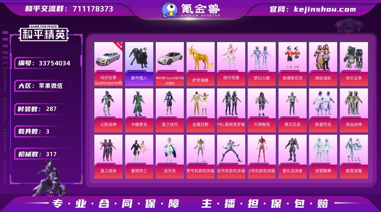 W16468 可立即换绑无需挂单养号 苹果 微信-无敌战神框-43粉装-21特效枪-3载具-14粉色飞行器-133527热力值-12王牌印记-287套装-317枪皮 【红色载具】:玛莎拉蒂Quattroporte(幻星粉)(六级) 【热门品类】:粉装-梦幻火箭,粉装-音爆索尼克,粉装-缤纷油彩,套装-都市猎人,角色-军刀雅典娜,套装-忍者信条,套装-暗夜行者,套装-潮萌小黄鸭,角色-8号机,角色-Mark.06 【粉色套装】:角色-绝对恒星,粉装-快乐主宰,粉装-幻影战神,粉装-木曜青龙,粉装-梦幻火箭,粉装-星之信仰,粉装-金属狂野,粉装-缤纷油彩,粉装-PEL轰鸣竞梦者,粉装-天禅智恒,粉装-彗云及圣,粉装-新星烈龙,粉装-绚金战神,粉装-星之彼岸,粉装-蜜桃特工,角色-洛天依,角色-零号机款机体服,角色-初号机款机体服,角色-2号机款机体服,角色-复仇流浪者,粉装-绒雪飘舞,粉装-傲雪凌霜,粉装-霁雪冰心,粉装-灵感创作师,粉装-太空嘟嘟,粉装-彩虹甜喵,粉装-甜蜜草莓,粉装-千面幻镜,粉装-旋转彩虹,粉装-冰川粉黛,粉装-冰川幽秘,粉装-桃夭倾城,粉装-青空秋雨,粉装-音爆索尼克,粉装-第五大道,粉装-萌物绒绒,粉装-炫光之旅,角色-严莉莉,角色-小蓝,角色-美雪,角色-美琪,套装-创世·救赎...