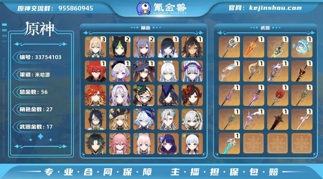 原神成品号56个金,退游不玩了,诚信第一,一旦售出,绝不找回。