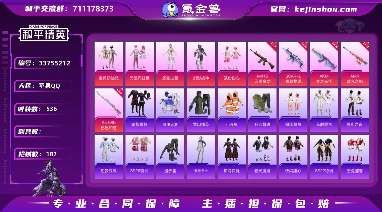 【特价出售】qq钱包无法注销苹果Q-3稀有5粉装5特效枪19热门136套装187枪皮 57510热力值 15印记 历史无敌战神 【3稀有】 M416-星际漫游 AKM-百万伏特 浪漫天命 【5粉装】 圣堂之誓 宝贝奶油派 天使彩虹糖 飒粉甜心 幻影战神 【5特效枪】 M416-五爪金龙 (7级) Kar98K-巳巳如意 (3级) AMR-炫光之旅 (4级) AKM-梦之光华 (6级) SCAR-L-青春物语 (6级) 【19热门】 小丑鱼 龟仙人 萌神柯基 雪山精英 呆萌铁蟹 PAI战队服 暗影哥特 团圆交子 瑞龙福将 狂沙舞者 漫步者 冰爽海盐 青龙圣者 破蛋小黄鸡 AKM-奇异狩猎者 M762-瑞龙福将 M24-奇异狩猎者 S686-奇异狩猎者 Kar98K-深海曼妙 【4头盔】 金曜白虎头盔 甜心宝贝头盔 百万伏特头盔 深海小丑鱼头盔 【3背包】 酷熊伴侣背包 甜心宝贝背包 百万伏特背包