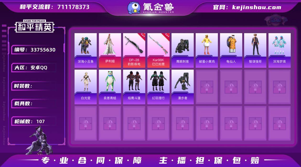 XS11496【可二次 粉装1 特效2 热门 深海小丑鱼 】安卓手Q-1粉装-2特效枪-71套装-107枪皮-5王牌印记-英勇黄金Ⅱ-27956热力值【1粉装】角色-萨利娅【2特效枪】DP-28-豹影疾电[5级],Kar98K-巳巳如意[5级]【1稀有】深海小丑鱼【2飞行器】空岛之星尾迹,光之冒险尾迹【1背包】深海小丑鱼背包【174其它衣服和枪皮】智谋强哥,SS36特训,萌鸡速递,海盐绵绵冰,春光漫游,绯格组合,SS25特训,朱霞炽焰,光之冒险,妙红点点,战术大师,玉兔迎春,绮丽涂鸦,和煦暖阳,SS24特训,SS32特训,纯真浪花,锦衣飞扬,幻羽潜行,蝶变,凌霄紫焰,特战装甲,鹰眼刺客,惊鸿侠骨,SS35特训,SS34特训,漫游都市,快乐星愿,SS23特训,角色-白光莹,霓虹街区,破蛋小黄鸡,SS26特训,龟仙人,白色伏地魔,SS22特训,森林游猎者,竞技名士,顽皮玉兔,轻风白浪,快闪甜心,耀粉歌者,幻彩翩翩,焰鹰斗篷,柠萌假日,猛禽,冰川特警,SS27特训,长空猛禽,甜蜜告白,缤纷果语,漫步者,田园牧歌,竞技角斗士,巳巳如意,海岛探路者,黑色伏地魔,鹤鸣,王牌教练,元气之梦,SS29特训,深海梦境,SS28特训,空岛之星,热情海星,SS31特训,玩偶服-卖崽青蛙,沙漠毒蛇,龙的传人,SCAR-L-小狗蛇点点,P90-巳巳如意,AC-VAL-快闪甜心,爆炸猎弓-惊鸿侠骨,GROZA-海盐豹豹,DP-28...