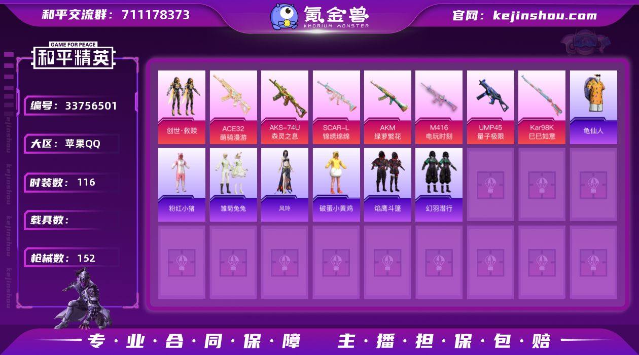 【960661】DYH18020【1粉装-8特效枪 深海小丑鱼】苹果手Q-1粉装-8特效枪-116套装-152枪皮-11王牌印记-超级王牌12星-45208热力值【1粉装】创世·救赎【8特效枪】AKS-74U-森灵之息[4级],AKM-绿萝繁花[5级],UMP45-量子极限[5级],SCAR-L-锦绣绵绵[5级],ACE32-萌骑漫游[3级],M416-电玩时刻[5级],Mk14-福马献瑞[5级],Kar98K-巳巳如意[5级]【1稀有】深海小丑鱼【4飞行器】破刃行动尾迹,萌物绒绒飞行器,马上有福飞行器,粉色滑翔尾迹【258其它衣服和枪皮】魅力单车,疯狂小兔子,SS21特训,龙魂突击队,SS37特训,鹤鸣,SS31特训,绯格组合,冰川特警,SS29特训,风暴特警,蝶变,老实芭蕉,SS32特训,灼焰舞者,青涩时光,战地督导,黄色名流,猛禽,幽夜迷踪,萝兰蝴蝶,竞技名士,春光漫游,黄色运动,贝斯之夜,酒红色名流,幻世战舞者,飞行日记,光之冒险,都市魅力,王牌教练,萌黄之夏,马上来财,特训学院,柠萌假日,SS26特训,蓝色运动,SS33特训,粉红小猪,SS23特训,雏菊兔兔,神气柴柴,龙的传人,SS36特训,玉兔迎春,缤纷果语,SS20特训,红釉青花,青玉碎影,角色-风玲,SS28特训,快闪甜心,雨过天青,破蛋小黄鸡,街头潮人,烈火街头,深蓝色名流,破晓战魂,银白舞王,耀粉歌者,懵萌河马,锦衣飞扬,狙击之神,野性战心,探宝勇士,...
