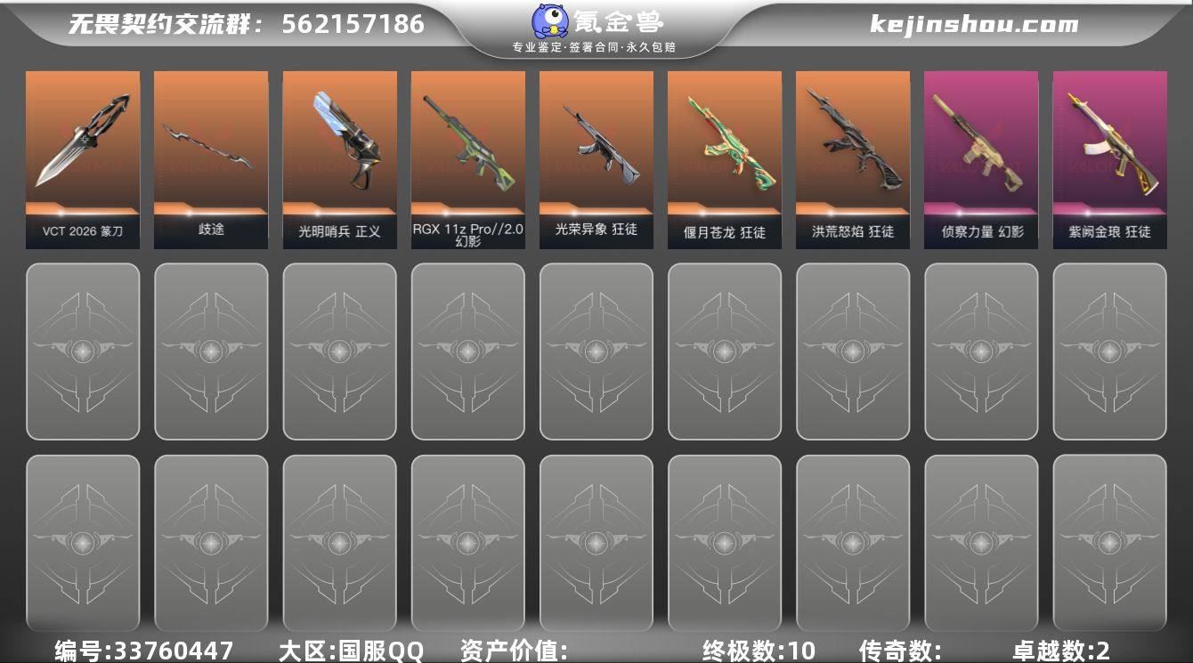 【WWD547】LV等级118/皮肤总价值20670/段位黄金/总皮肤数量37/刀皮数量4/枪皮数量33/套装数量1/具体详情请看图/VCT 2026 赛季套装/炼狱/暮蝶/钛狐/壹决/捷风/不死鸟/贤者/猎枭/芮娜/霓虹/夜露/黑梦/近战武器-蒙太奇 战斧/近战武器-荆刺链刃/VCT 2026 篆刀/光荣异象 歧途/狂徒-洪荒怒焰/狂徒-偃月苍龙/狂徒-光荣异象/狂徒-紫阙金琅/幻影-RGX 11z Pro//2.0/幻影-侦察力量/幻影-蒙太奇/战神-蒙太奇/骇灵-蒙太奇/正义-光明哨兵/鬼魅-宿怨/狂怒-蒙太奇/战术小伙伴的夏日 卡面/无畏契约GO!第一卷:芮娜 卡面/无畏契约GO!第一卷:零 卡面/蝰蛇vs幽影 卡面/完美调谐 卡面 /代号红色 卡面/新兵报到 卡面/V契约 卡面/无畏契约 卡面/买装还是存钱 喷漆/胜利属于无畏契约 喷漆/GLHF 喷漆/无畏契约 喷漆/天外飞客 挂饰/无畏契约 纪念币 挂饰