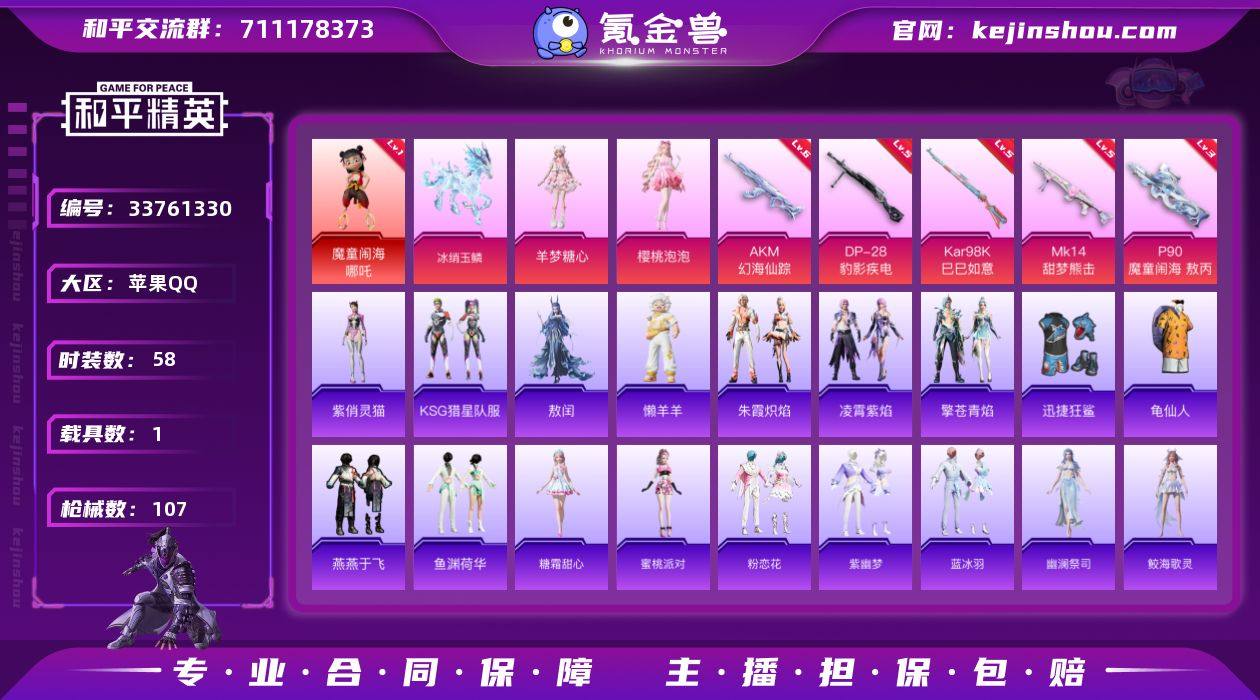 【LHPX2585】可二次【特价出售/店主推荐/哪吒樱桃泡泡马皮】苹果 手Q-1神装-2粉装-5特效枪-1载具-5粉色飞行器-32072热力值-6王牌印记-58套装-107枪皮 【红色神装等级】:魔童闹海-哪吒(一级) 【红色角色神装】:魔童闹海-哪吒 【热门品类】:套装-龟仙人 【粉色套装】:角色-樱桃泡泡,角色-羊梦糖心 【粉色枪皮等级】:AKM-幻海仙踪(六级),P90-魔童闹海 敖丙(三级),Kar98K-巳巳如意(五级),Mk14-甜梦熊击(五级),DP-28-豹影疾电(五级) 【粉色载具】:冰绡玉鳞 【粉色枪皮】:AKM-幻海仙踪,P90-魔童闹海 敖丙,Kar98K-巳巳如意,Mk14-甜梦熊击,DP-28-豹影疾电 【粉色飞行器】:炫彩糖果飞行器,繁龙极客飞行器,幻海仙踪飞行器,飞天猪飞行器,灵珠游龙飞行器 【粉色降落伞】:快乐主宰降落伞,樱桃泡泡降落伞,雪月幻音降落伞,幻海仙踪降落伞,星穹咏叹调降落伞,幻彩电音降落伞,喜羊羊与灰太狼降落伞,魔童闹海 哪吒降落伞,魔童闹海 敖丙降落伞,异瞳寒姬降落伞,炫彩糖果降落伞 【稀有套装】:套装-龟仙人,套装-KSG猎星队服,套装-炫彩糖果,套装-燕燕于飞,套装-鱼渊荷华,角色-糖霜甜心,角色-蜜桃派对,套装-粉恋花,套装-紫幽梦,套装-蓝冰羽,角色-幽澜祭司,...