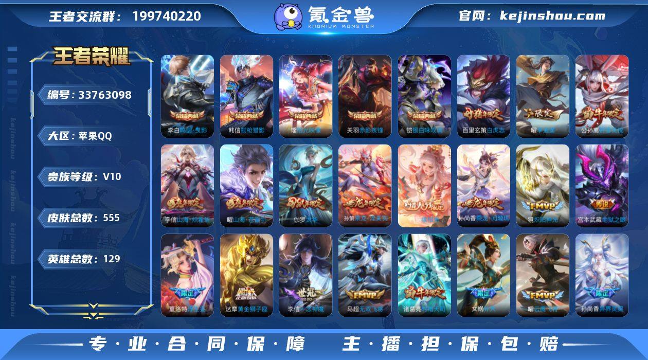 V10 5典藏 4珍品传说 64传说 129英雄 555皮肤 可二次 可修改实名 女号 【英雄全皮】马超全皮,司空震全皮,女娲全皮,蒙恬全皮,沈梦溪全皮,敖隐全皮,孙权全皮,蚩奼全皮,苍全皮,达摩全皮,海诺全皮,戈娅全皮,刘邦全皮,暃全皮,夏洛特全皮,赵怀真全皮,猪八戒全皮,影全皮,大禹全皮 【稀有英雄】敖隐(小龙人),大司命,嬴政(始皇帝),韩信(韩跳跳),夏洛特(夏师傅),艾琳,橘右京(橘子),娜可露露(鸟人),不知火舞,赵云,金蝉(唐僧),戈娅 【荣耀水晶】拾光映像(瑶典藏),鸣剑·曳影,弑枪猎影(韩信典藏),赤影疾锋,银白咏叹调(倪克斯侍卫) 【珍品传说】江户川柯南,怪盗基德,朽木白哉,黑崎一护 【传说皮】神骥·逐星野,神骥·赴朔漠,乘龙·淬吴钩(孙策年限),琥珀纪元马超,乘龙·问璇玑(孙尚香年限),幻光神枪,神树通天,万灵伏威,续相思,李逍遥,遇见胡旋,游龙清影(小青龙),山海·炽霜斩(李信年限),黄金狮子座,黄金射手座,黄金白羊座,零号·赤焰,仲夏夜之梦(大飞蛾),地狱之眼,末日机甲-孙尚香(绿蚂蚱),一念神魔,冠军飞将,久胜战神,云鹰飞将(小将军),炽阳神光,无双飞将,胖达荣荣,乞巧织情,时之恋人-刘备(电焊工),飞鸢探春,绛天战甲(鸡嘴战神),超时空战士-狄仁杰,末日机甲-孙策,花朝如约(花篮子),山海·苍雷引(电...