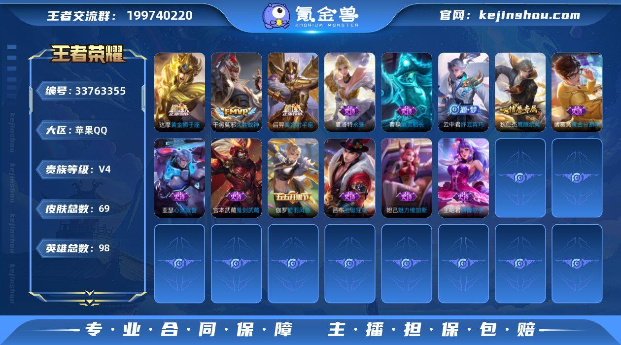 [19047606]V4 3传说 98英雄 69皮肤 可二次 可修改实名 男号