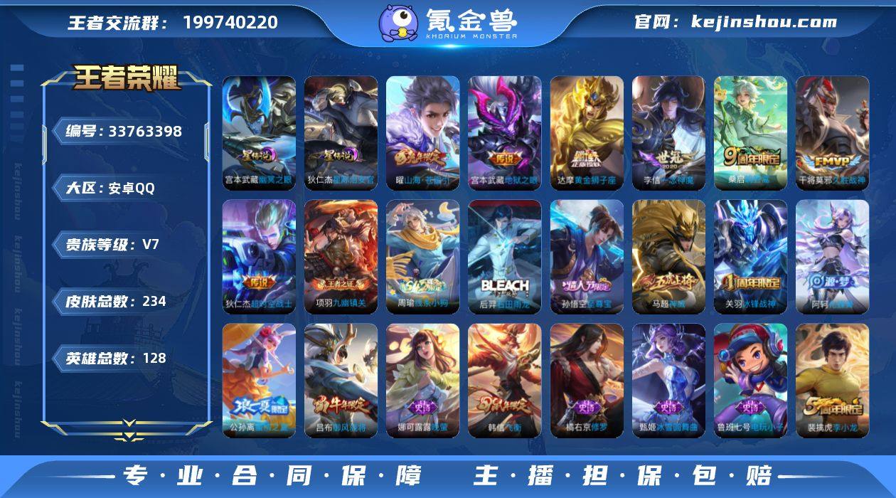 【WZ182847】安卓Q-V7-至尊星耀II段位-128英雄-234皮肤-7传说-66史诗【传说皮肤】:桑启鸣野蒿,曜山海苍雷引,李信一念神魔,干将莫邪久胜战神,达摩黄金狮子座,宫本武藏地狱之眼,狄仁杰超时空战士【限定皮肤】:白起狰,姜子牙天穹之誓,狄仁杰阴阳师,虞姬凯尔特女王,赵云皇家上将,嬴政白昼王子,孙尚香蔷薇恋人,鲁班七号狮舞东方,芈月重明,吕布猎兽之王,吕布御风骁将,夏侯惇朔风刀,甄姬游园惊梦,曹操烛龙,典韦穷奇,狄仁杰魔术师,狄仁杰万华元夜,达摩沙漠行僧,项羽海滩派对,老夫子醍醐杖,关羽冰锋战神,程咬金演武夺筹,韩信飞衡,兰陵王金庭之子,孙悟空至尊宝,牛魔御旌,李元芳云中旅人,钟馗神迹守卫,钟馗驱傩正仪,杨玉环遇见飞天,干将莫邪胡桃夹子,雅典娜黎明之约,蔡文姬繁星吟游,太乙真人饕餮,鬼谷子原初探秘者,鬼谷子五谷丰年,苏烈千军破阵,百里玄策原初追逐者,弈星混沌棋,梦奇顽趣,公孙离蜜橘之夏,沈梦溪大漠名商,明世隐疑决卦,裴擒虎李小龙,裴擒虎擒涛扼浪,狂铁御狮,米莱狄御霄,云中君纤云弄巧,盾山御銮,上官婉儿梁祝,嫦娥拒霜思,嫦娥暖冬兔眠,曜山海苍雷引,鲁班大师探海日志,桑启海盐诗旅,暃星界游侠,艾琳女武神...