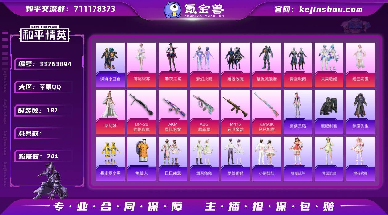 【960867】M1047869【可二次 9粉装-5特效枪 梦幻火箭 浪漫天命,暴走罗小黑,小丑鱼 AKM-星际浪客[7级],M416-五爪金龙[7级],AUG-超新星[7级],】苹果手Q-9粉装-5特效枪-187套装-244枪皮-14王牌印记-坚韧铂金Ⅲ-82708热力值【9粉装】青空秋雨,角色-鸢尾珑雾,角色-烟云彩露,角色-萨利娅,梦幻火箭,角色-罪夜之冕,角色-复仇流浪者,未来歌姬,暗夜玫瑰【5特效枪】DP-28-豹影疾电[5级],AKM-星际浪客[7级],M416-五爪金龙[7级],AUG-超新星[7级],Kar98K-巳巳如意[5级]【4稀有】浪漫天命,暴走罗小黑,小丑鱼,M762-奇异狩猎者【11飞行器】破刃行动尾迹,空岛之星尾迹,纱华羽翼飞行器,顶峰精英尾迹,炎氏战神飞行翼,粉色滑翔尾迹,炫彩糖果飞行器,繁龙极客飞行器,梦幻火箭飞行器,异域银装飞行器,龙翔九天飞行器【2头盔】梦幻火箭头盔,甜蜜誓约头盔【3背包】梦幻火箭背包,深海小丑鱼背包,萌熊伴侣背包【413其它衣服和枪皮】SS25特训,银河圣歌,角色-都市丽猫,玩偶服-卖崽青蛙,蓝冰羽,轻风白浪,白辉玉蕊,龙的传人,飞行日记,SS24特训,紫幽梦,甜蜜告白,空投萌叽,黄色运动,幻世战舞者,SS31特训,萝兰蝴蝶,春光漫游,虎虎生威吉莉,角色-摩登魅猫,角色-军刀雅典娜,角色-2B战斗服款,SS26特训,麻辣教官,巳巳如意...