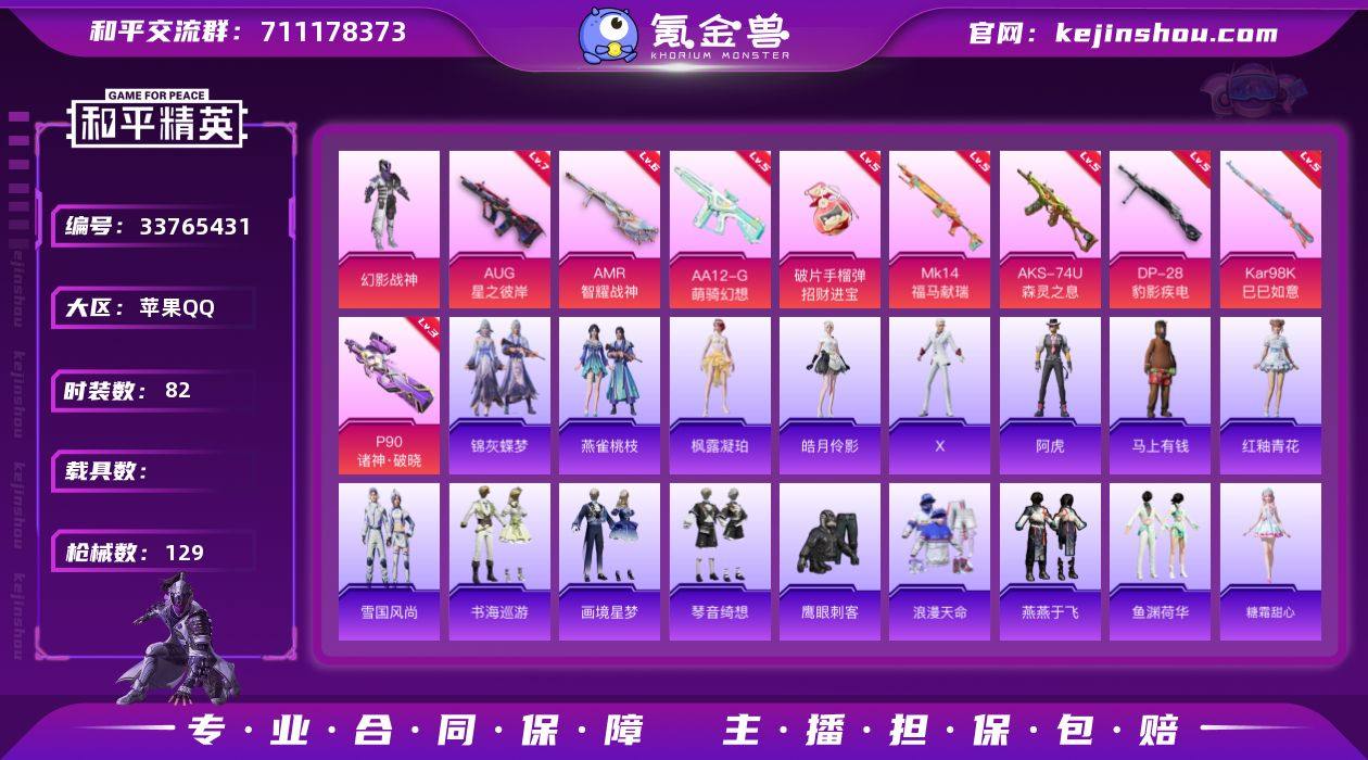 苹果 手Q-1粉装-9特效枪-0载具-1粉色飞行器-37245热力值-10王牌印记-82套装-129枪皮 【热门品类】:套装-浪漫天命 【粉色套装】:粉装-幻影战神 【粉色枪皮等级】:AUG-星之彼岸(七级),AKS-74U-森灵之息(五级),P90-诸神·破晓(三级),Kar98K-巳巳如意(五级),Mk14-福马献瑞(五级),AMR-智耀战神(六级),AA12-G-萌骑幻想(五级),DP-28-豹影疾电(五级),破片手榴弹-招财进宝(五级) 【粉色枪皮】:AUG-星之彼岸,AKS-74U-森灵之息,P90-诸神·破晓,Kar98K-巳巳如意,Mk14-福马献瑞,AMR-智耀战神,AA12-G-萌骑幻想,DP-28-豹影疾电,破片手榴弹-招财进宝 【粉色飞行器】:炫彩糖果飞行器 【粉色降落伞】:怪笑疯兔降落伞,暗夜玫瑰降落伞,月下星之子降落伞,星穹咏叹调降落伞,幻彩电音降落伞,炫彩糖果降落伞 【稀有套装】:套装-雪国风尚,套装-炫彩糖果,角色-X,角色-阿虎,套装-马上有钱,套装-燕燕于飞,套装-鱼渊荷华,角色-糖霜甜心,套装-紫幽梦,套装-蓝冰羽,套装-彩虹兔,套装-云朵鹅,套装-雪绒豹,套装-书海巡游,套装-画境星梦,套装-琴音绮想,套装-雨过天青,套装-红釉青花,角色-枫露凝珀,角色-皓月伶影,套装-锦灰蝶梦,套装-燕雀桃枝 【稀有枪皮】:AKM-...