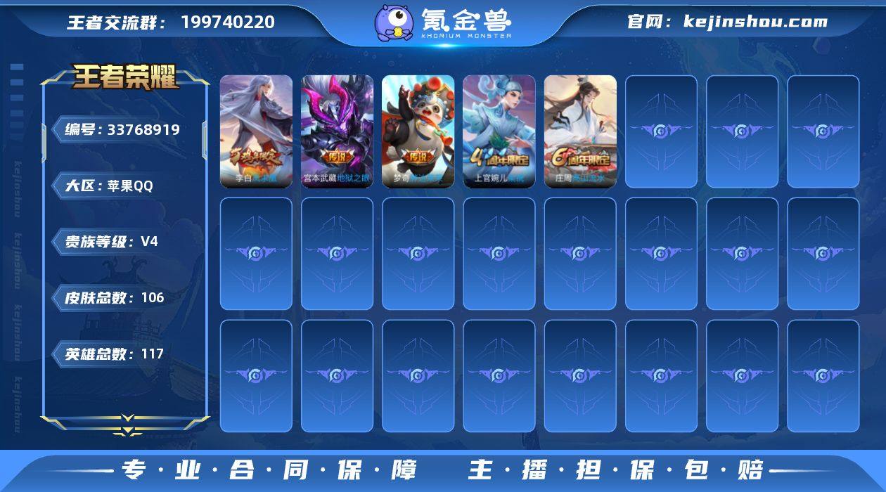 苹果Q 不可二次 117英雄106皮肤 凤求凰 胖达荣荣 地狱之眼 冰冠公主 梁祝 神器万象笔 遇见神鹿 原初探秘者 特工魅影 黄金分割率 紫霞仙子 幽灵船长 末日机甲男 节奏热浪 偶像歌手 街头霸王 花好人间 御霄 御旌 混沌棋 疑决卦 醍醐杖 万华元夜 克喵 演武夺筹 驱傩正仪 千军破阵 沙漠行僧 女仆咖啡 金庭之子 大漠名商 海盐诗旅 擒涛扼浪 探海日志 水果甜心 天穹祈灯 高山流水 无心 夏日便利店蔡文姬 乱世虎臣 航海奇遇记 鹰眼统帅 王者荣耀账号
