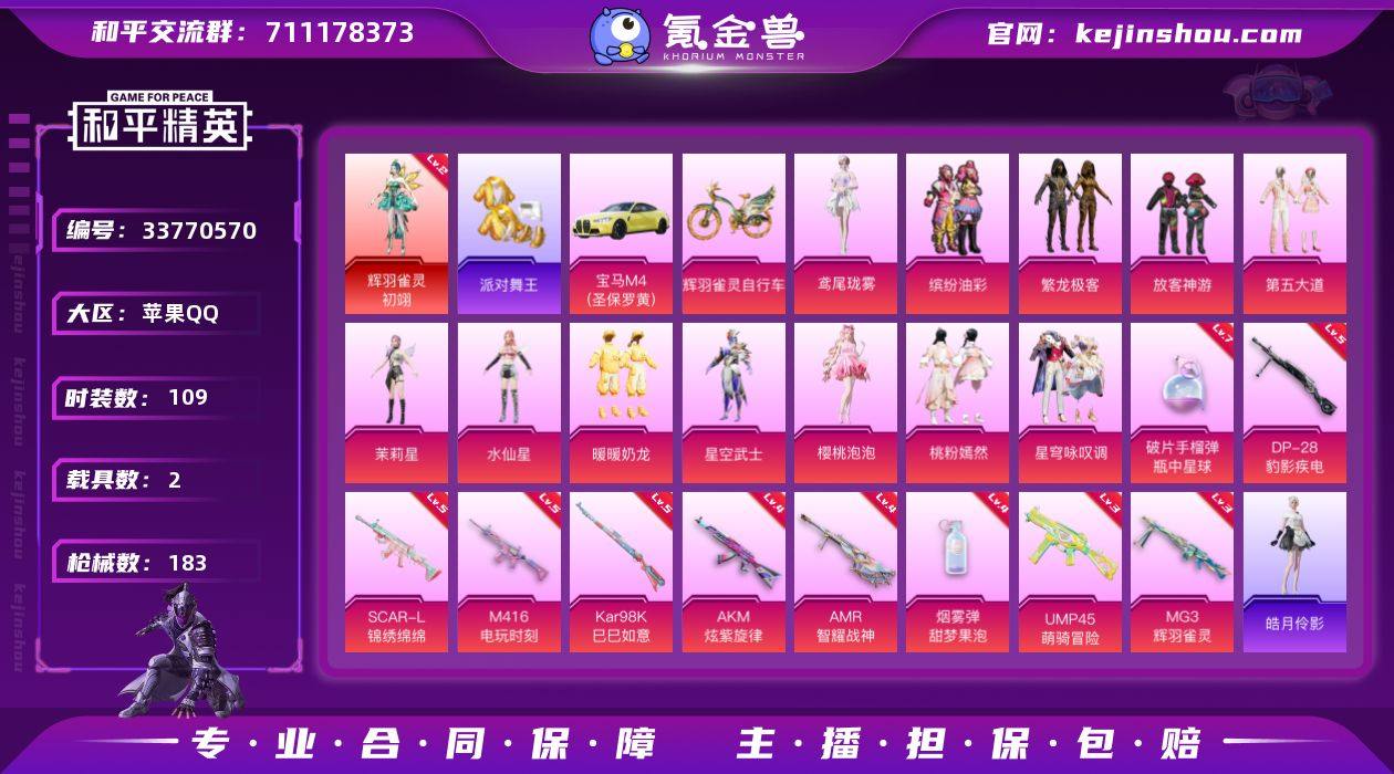 【kyhp1667】苹果 手Q-1神装-12粉装-10特效枪-2载具-4粉色飞行器-57822热力值-9王牌印记-109套装-183枪皮 【红色神装等级】:辉羽雀灵-初翊(二级) 【红色角色神装】:辉羽雀灵-初翊 【热门品类】:粉装-缤纷油彩,粉装-繁龙极客,套装-派对舞王,套装-龟仙人 【粉色套装】:粉装-缤纷油彩,粉装-放客神游,粉装-第五大道,角色-茉莉星,角色-水仙星,粉装-暖暖奶龙,粉装-繁龙极客,角色-星空武士,角色-樱桃泡泡,粉装-桃粉嫣然,粉装-星穹咏叹调,角色-鸢尾珑雾 【粉色枪皮等级】:AKM-炫紫旋律(四级),SCAR-L-锦绣绵绵(五级),M416-电玩时刻(五级),UMP45-萌骑冒险(三级),Kar98K-巳巳如意(五级),AMR-智耀战神(四级),DP-28-豹影疾电(五级),MG3-辉羽雀灵(三级),烟雾弹-甜梦果泡(四级),破片手榴弹-瓶中星球(七级) 【粉色载具】:宝马M4(圣保罗黄),僚机-萌兔起飞,辉羽雀灵自行车 【粉色枪皮】:AKM-炫紫旋律,SCAR-L-锦绣绵绵,M416-电玩时刻,UMP45-萌骑冒险,Kar98K-巳巳如意,AMR-智耀战神,DP-28-豹影疾电,MG3-辉羽雀灵,烟雾弹-甜梦果泡,破片手榴弹-瓶中星球 【粉色飞行器】:炫彩糖果飞行器,超新星飞行器,雀灵庇佑飞行器,极意拳锋飞行器 【粉色降落伞】:...
