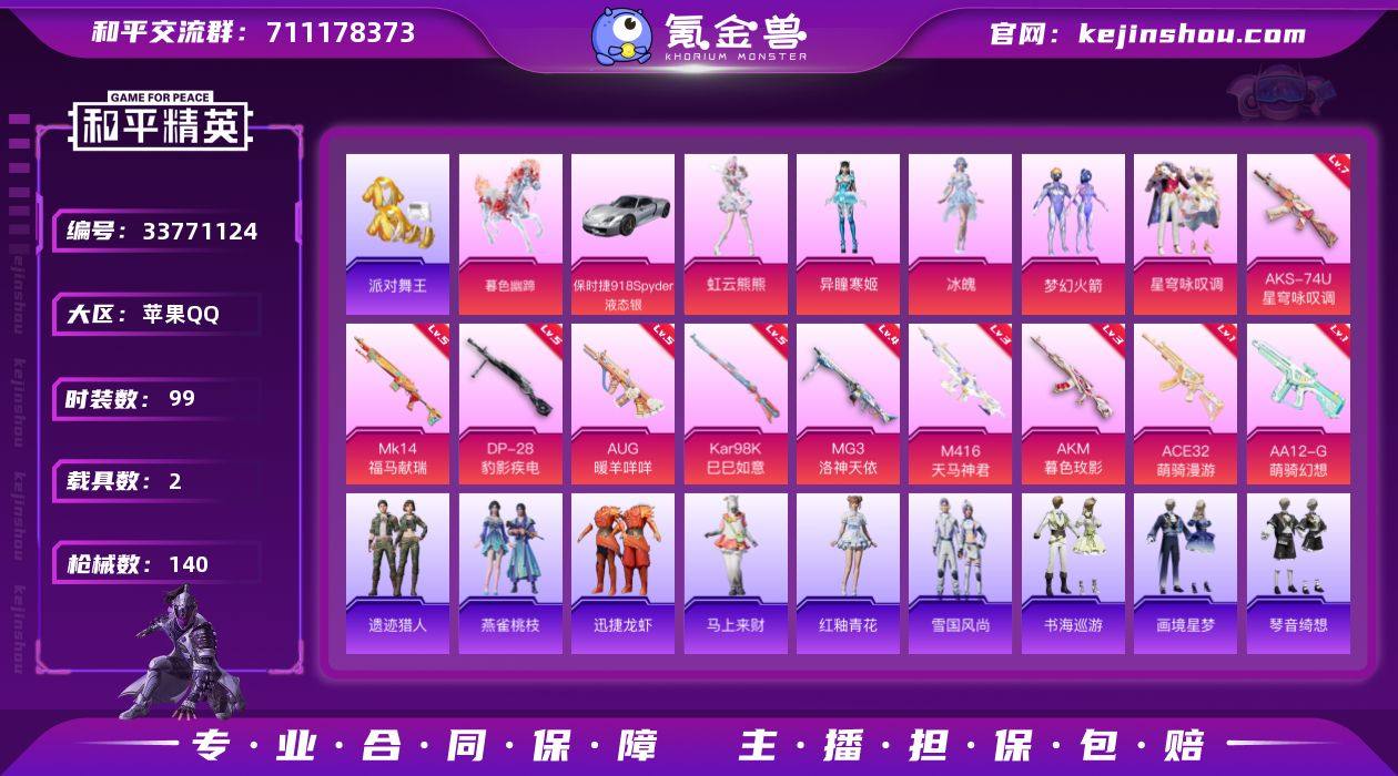 【A12013】苹果【小号/梦幻火箭/派对舞王/小丑鱼/暗影哥特/】手Q-5粉装-10特效枪-2载具-4粉色飞行器-43911热力值-6王牌印记-99套装-140枪皮 【热门品类】:粉装-梦幻火箭,套装-浪漫天命,套装-派对舞王,套装-小丑鱼,套装-暗影哥特 【粉色套装】:粉装-梦幻火箭,粉装-星穹咏叹调,角色-冰魄,角色-异瞳寒姬,角色-虹云熊熊 【粉色枪皮等级】:AKM-暮色玫影(三级),M416-天马神君(三级),AUG-暖羊咩咩(五级),ACE32-萌骑漫游(一级),AKS-74U-星穹咏叹调(七级),Kar98K-巳巳如意(五级),Mk14-福马献瑞(五级),AA12-G-萌骑幻想(一级),DP-28-豹影疾电(五级),MG3-洛神天依(四级) 【粉色载具】:保时捷918 Spyder(液态银),暮色幽蹄 【粉色枪皮】:AKM-暮色玫影,M416-天马神君,AUG-暖羊咩咩,ACE32-萌骑漫游,AKS-74U-星穹咏叹调,Kar98K-巳巳如意,Mk14-福马献瑞,AA12-G-萌骑幻想,DP-28-豹影疾电,MG3-洛神天依 【粉色飞行器】:炫彩糖果飞行器,英伦信使飞行器,极意拳锋飞行器,暮色之舞飞行器 【粉色降落伞】:千金淑猫降落伞,星穹咏叹调降落伞,幻彩电音降落伞,绯穹魔姬降落伞,魔童闹海 哪吒降落伞,异瞳寒姬降落伞,天象三御降落伞,炫彩糖果降落伞,暮色玫影降...