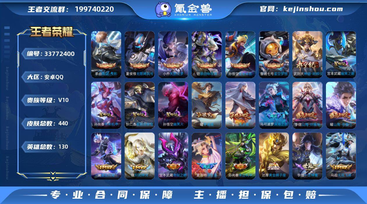 V10|6典藏|440皮|全英雄|多热门限定 可二次实名,安全无找回! 典藏:李白/铠/鲁班等6个热门典藏 热门限定:凤求凰、武陵仙君、白虎志、五虎将全套、兔年限定 传说49个,史诗130+,限定皮肤160+ 对抗路31段+打野30段,24个王者印记 皮肤多到数不过来,看图就懂