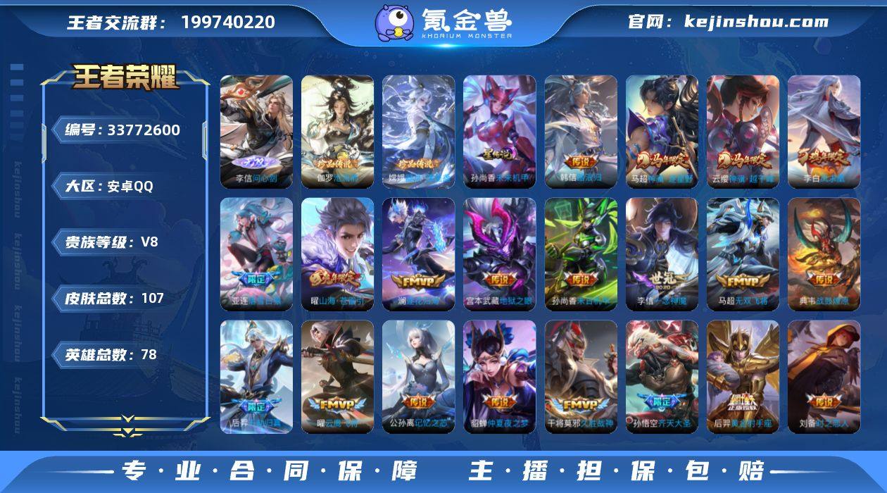 【高性价比·26传说·问心剑·沧流箭·器灵落星盏·踏浪归·神骥越千峰·神骥逐星野·千劫归真·落雪白狼·逐花归海·齐天大圣·山海苍雷引·凤求凰·龙胆·无二次包过】YXw25430-安卓Q-78英雄-107皮肤-1王者印记-30铭文-贵族积分5w【贵族8】【1无双·2珍品·1星传说·26传说·11按键】【因赛季更新游戏段付以上号为准!】 【英雄全皮】:孙权全皮 【无双皮肤】:李信问心剑 【珍品传说】:伽罗沧流箭,嫦娥器灵落星盏 【星元皮肤】:孙尚香未来机甲 【传说皮肤】:韩信踏浪归,云缨神骥越千峰,马超神骥逐星野,后羿千劫归真,嬴政玄雷天君,亚连落雪白狼,典韦战鼓燎原,澜逐花归海,公孙离记忆之芯,孙悟空齐天大圣,曜山海苍雷引,马超无双飞将,铠绛天战甲,虞姬启明星使,曜云鹰飞将,李信一念神魔,刘备时之恋人,貂蝉猫影幻舞,张良黄金白羊座,干将莫邪久胜战神,后羿黄金射手座,貂蝉仲夏夜之梦,李白凤求凰,孙尚香末日机甲,宫本武藏地狱之眼,狄仁杰超时空战士 【限定皮肤】:暃埋骨钱,李白谪仙醉月,狄仁杰阴阳师,赵云皇家上将,赵云龙胆,元歌无心,狄仁杰魔术师,项羽海滩派对,孙悟空齐天大圣,李元芳匿光侦查者,虞姬启明星使,哪吒逐梦之翼,曜山海苍雷引,司空震地狱燃心,...