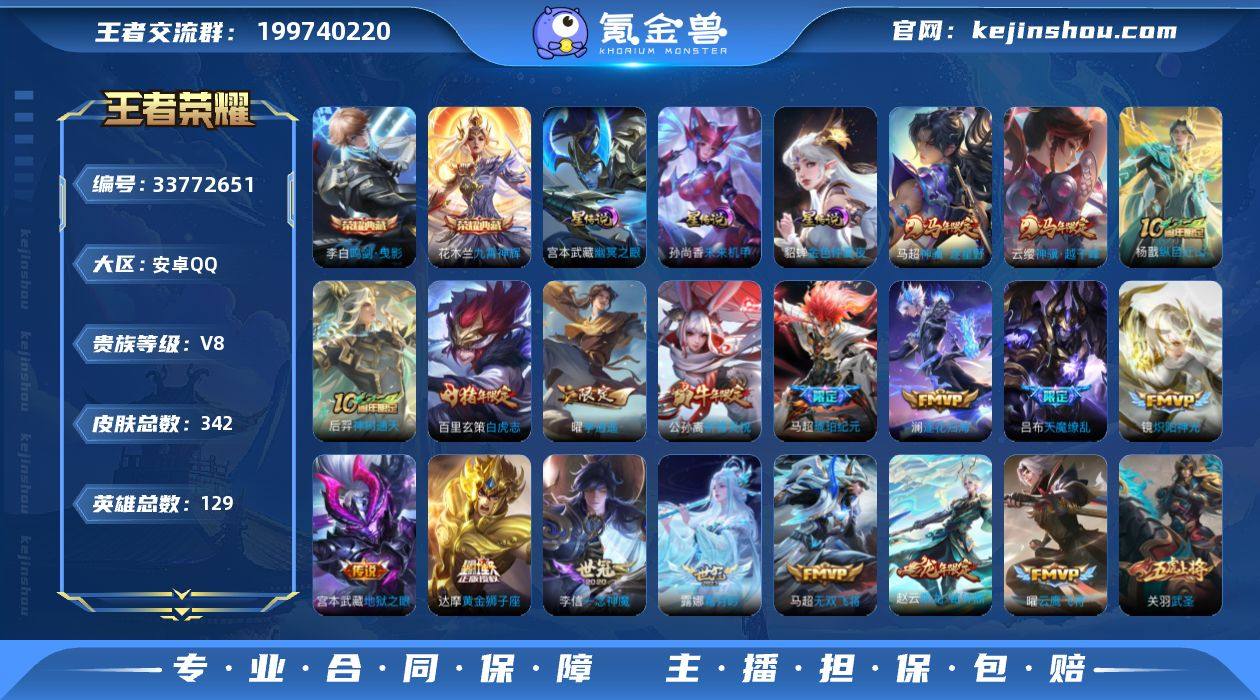 【W7157】安卓Q区-可二次-贵8-129英雄-342皮肤-2典藏-28传说-42段打野-4金标-4星元-13按键-万战马超/曜-鸣剑·曳影/九霄神辉/至尊宝/白虎志/神骥·越千峰/神骥·逐星野/纵目迁山/李逍遥/时之恋人/炽阳神光/逐花归海/挚爱之约/天魔缭乱-贵族积分8W-营地ID:415659136 【星元皮肤】:刘备时之思念,宫本武藏幽冥之眼,貂蝉金色仲夏夜,孙尚香未来机甲