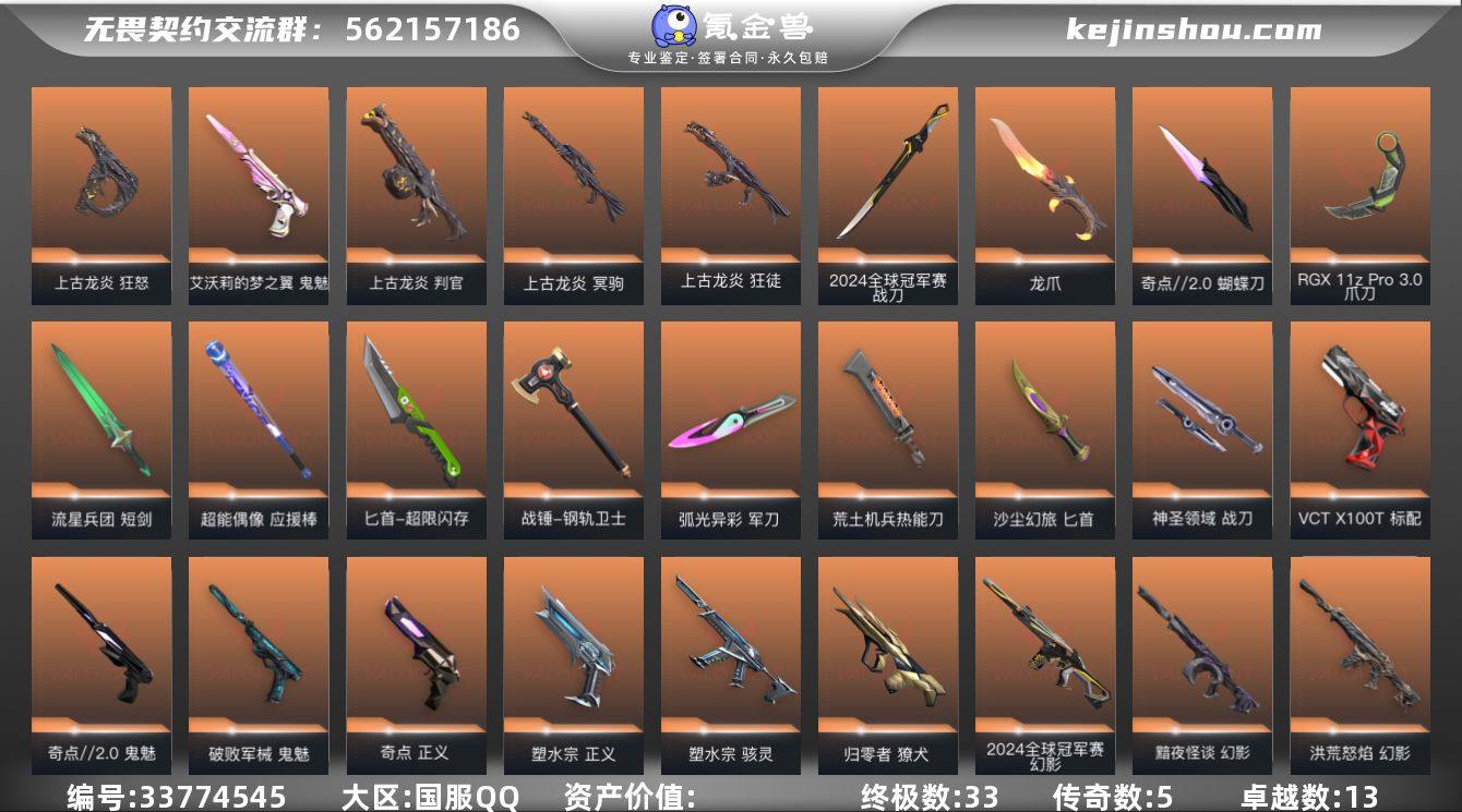 【编号05807 可秒换绑】【店长推荐!极品颗秒号!千灵华绽幻影 奇点//2.0蝴蝶刀 鬼丸国纲 RGX 11z Pro//3.0 爪刀 2024全球冠军赛幻影 2024全球冠军赛战刀 黑波之刃!!!】 【套装】:2024全球冠军赛套装,上古龙炎套装,塑水宗套装,奇点//2.0套装,掠影套装 【英雄】:幻棱,炼狱,维斯,暮蝶,钛狐,壹决,铁臂,捷风,雷兹,幽影,不死鸟,贤者,猎枭,蝰蛇,零,芮娜,奇乐,尚勃勒,霓虹,斯凯,夜露,星礈,K/O,海神,盖可,黑梦,钢锁 【近战武器】:近战武器-2024全球冠军赛 战刀,近战武器-奇点//2.0 蝴蝶刀,近战武器-RGX 11z Pro//3.0 爪刀,近战武器-黑波之刃,近战武器-威龙之刃,近战武器-鬼丸国纲,近战武器-龙爪,近战武器-流星兵团 短剑,近战武器-超能偶像 应援棒,近战武器-超限闪存 匕首,近战武器-钢轨卫士 战锤,近战武器-硅晶刻刀,近战武器-弧光异彩 军刀,近战武器-荒土机兵 热能刀,近战武器-沙尘幻旅 匕首,近战武器-影刃,近战武器-神圣领域 战刀 【狂徒】:狂徒-洪荒怒焰,狂徒-混沌序曲,狂徒-奇点//2.0,狂徒-塑水宗,狂徒-上古龙炎,狂徒-掠影,狂徒-盖世英雄,狂徒-海洋之星,狂徒-耀鳞威龙,狂徒-紫阙金琅,狂徒-超能偶像,狂徒-...