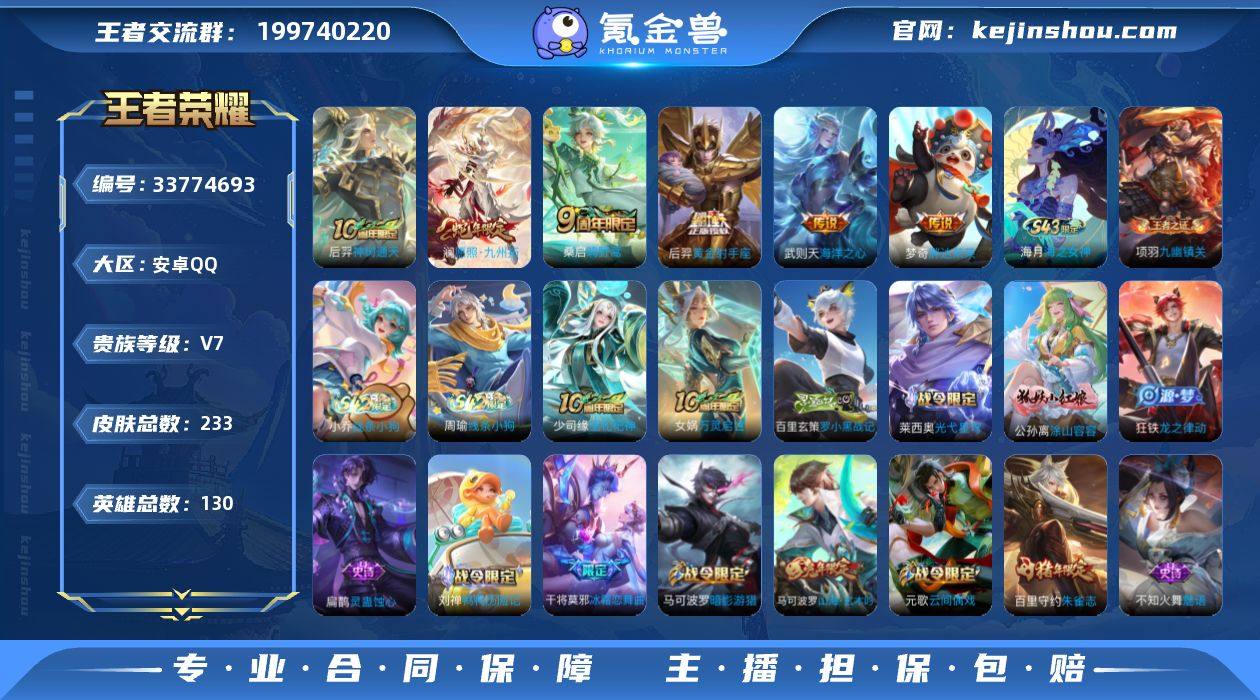 【精品号手慢无】233皮V7,王者印记8个,7500分莱西奥,2星传说,5按键,6传说皮,1荣耀水晶:武则天,敖隐,愿照·九州拓,300+玫瑰,星币1284个。