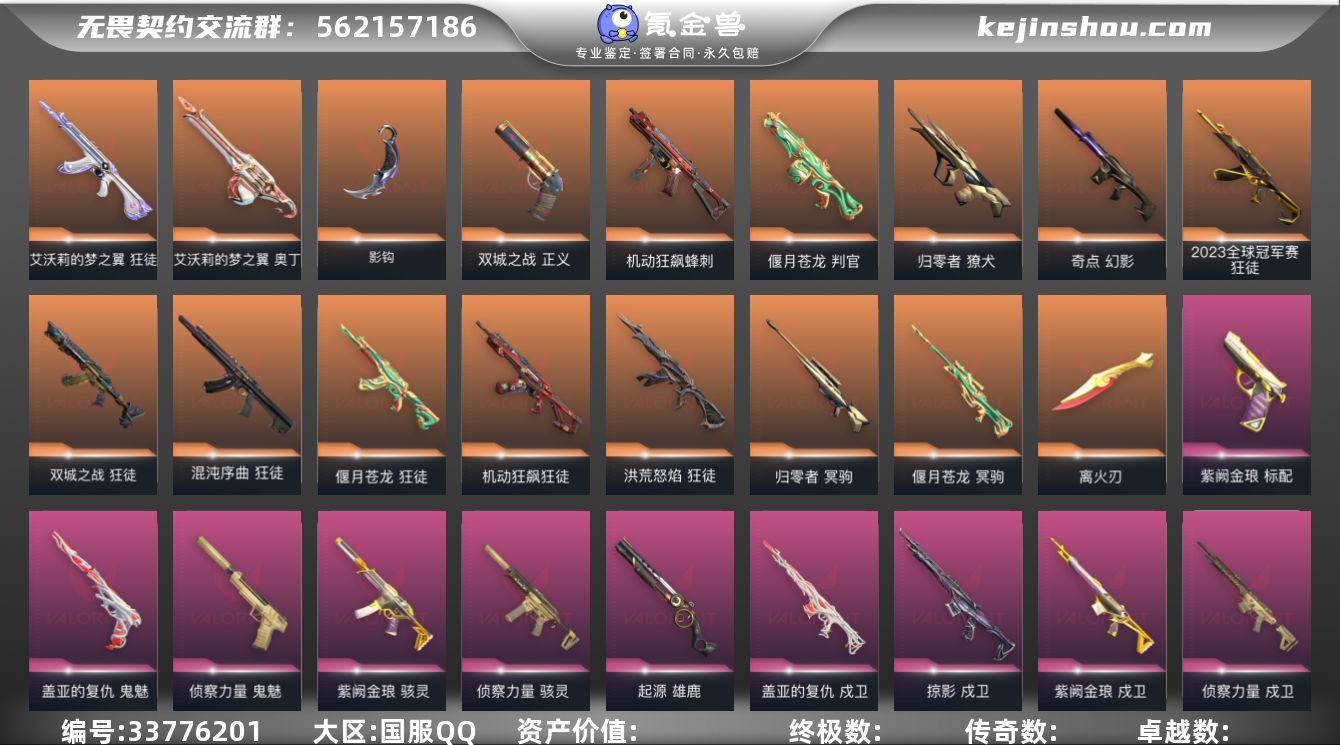 【sf689】【套装】:2023全球冠军赛套装,离火刃套装,《英雄联盟:双城之战》套装,《双城之战》收藏套装,归零者套装,偃月苍龙套装,掠影//2.0套装,盖亚的复仇套装,侦察力量套装,紫阙金琅套装,掠影套装,般若假面//2.0套装,魄月玄兔套装,无畏启程套装,离火刃套装 【英雄】:幻棱,炼狱,维斯,暮蝶,钛狐,壹决,铁臂,捷风,雷兹,幽影,不死鸟,贤者,猎枭,蝰蛇,零,芮娜,奇乐,尚勃勒,霓虹,斯凯,夜露,K/O,盖可,黑梦,钢锁 【近战武器】:近战武器-2023全球冠军赛 苦无,近战武器-影钩,近战武器-侦察力量 蝴蝶刀,近战武器-剥皮小刀,近战武器-离火刃,近战武器-镭切,近战武器-鬼丸国纲,近战武器-双城之战 拳套,近战武器-超限闪存 匕首,近战武器-盖亚之怒,近战武器-合金战车 军刀,近战武器-弧光异彩 军刀,近战武器-荒土机兵 热能刀,近战武器-金琅斧,近战武器-魄月玄刃,近战武器-沙尘幻旅 匕首,近战武器-生物收割器,近战武器-偃月,近战武器-影刃,近战武器-诡秘蛇影 军刀,近战武器-神圣领域 战刀,近战武器-日耀风暴 遗器,近战武器-阿特拉斯指挥部 甩棍 【狂徒】:狂徒-2023全球冠军赛,狂徒-归零者,狂徒-洪荒怒焰,狂徒-混沌序曲,狂徒...