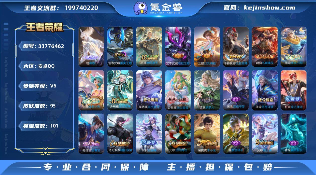 安卓Q-V6-至尊星耀III段位-101英雄-95皮肤-1无双-4传说-36史诗【英雄全皮】:孙权全皮【无双皮肤】:铠神罪【传说皮肤】:后羿神树通天,云缨幻光神枪,干将莫邪久胜战神,宫本武藏地狱之眼【限定皮肤】:狄仁杰阴阳师,赵云皇家上将,高渐离玩趣恶龙,元歌云间偶戏,马可波罗暗影游猎,狄仁杰魔术师,项羽海滩派对,孙悟空至尊宝,百里玄策原初追逐者,裴擒虎李小龙,沈梦溪龙舞盛年【赛季限定】:太乙真人谧流熔炉,钟馗虚灵犬护,甄姬逆浪荇歌,亚瑟荣光之誓,百里玄策原初追逐者,项羽九幽镇关【战令限定】:马可波罗暗影游猎,元歌云间偶戏,孙膑茶境仙,马超访茗客,周瑜百相守梦,孙策百相守梦,莱西奥光弋星穹,明世隐往忆晖光,周瑜线条小狗,小乔线条小狗【史诗皮肤】:周瑜线条小狗,小乔线条小狗,项羽九幽镇关,少司缘巫礼祀神,莱西奥光弋星穹,公孙离涂山容容,西施织梦人,黄忠百相守梦,周瑜百相守梦,狂铁龙之律动,阿轲化蝶舞,孙膑茶境仙,艾琳陌上桑,澜赏金猎手,杨戬天秀启明,元歌云间偶戏,裴擒虎李小龙,百里玄策原初追逐者,马可波罗暗影游猎,狄仁杰鹰眼统帅,李元芳逐浪之夏,百里守约特工魅影,雅典娜冰冠公主,诸葛亮黄金分割率,孙悟空至尊宝...